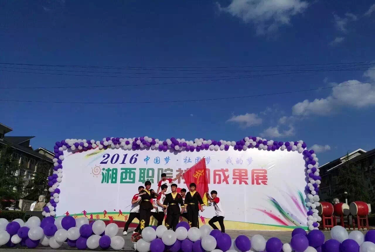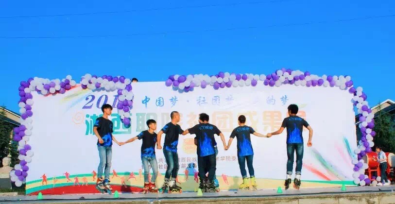 开场节目苗鼓与舞狮的结合很好的带动了全场氛围,鼓声节拍强劲有力,气势蓬勃;狮子随着节拍时而跳跃,时而眨眼睛,扇耳朵,活灵活现,真是让人陶醉。开场节目接近尾声时,主持人以饱满的热情邀请团委书记王丹子老师上台为狮子点睛,寓意赋予其生命。我院国学社编排的《跪羊图》教化世人知感恩行孝道,感动了不少的现场观众。街舞协会带来的街舞《bang bang bang 》、《精舞门》将演出现场的气氛推向了一个又一个高潮,受到广大师生的一致好评。书画协会精心准备的《古韵书画》与武术协会用心排练的《武林风》让现场观众感受到了中华传统文化的博大精深。由校园歌手大赛选手带来的《中国梦歌曲串烧》让现场观众热血沸腾,更是激发了同学的爱国热情。轮滑协会带来的《花样轮滑》既精彩又惊险,现场的观众们纷纷被他们的轮滑技巧所折服。民族歌舞协会表演的舞蹈《黎乡笠影》仿佛让观众们置身于清凌凌的湖畔,随着姑娘们曼妙的舞姿在阡陌纵横的田间小道上漫步。最终通过现场老师们投票评选,《黎乡笠影》获得了最佳节目奖,院团委副书记欧阳杰为他们颁发了奖牌。现场还设置了有奖问答,回答正确的观众获得了由电子协会现场制作的精美礼品和书画协会精心创作的作品一份。