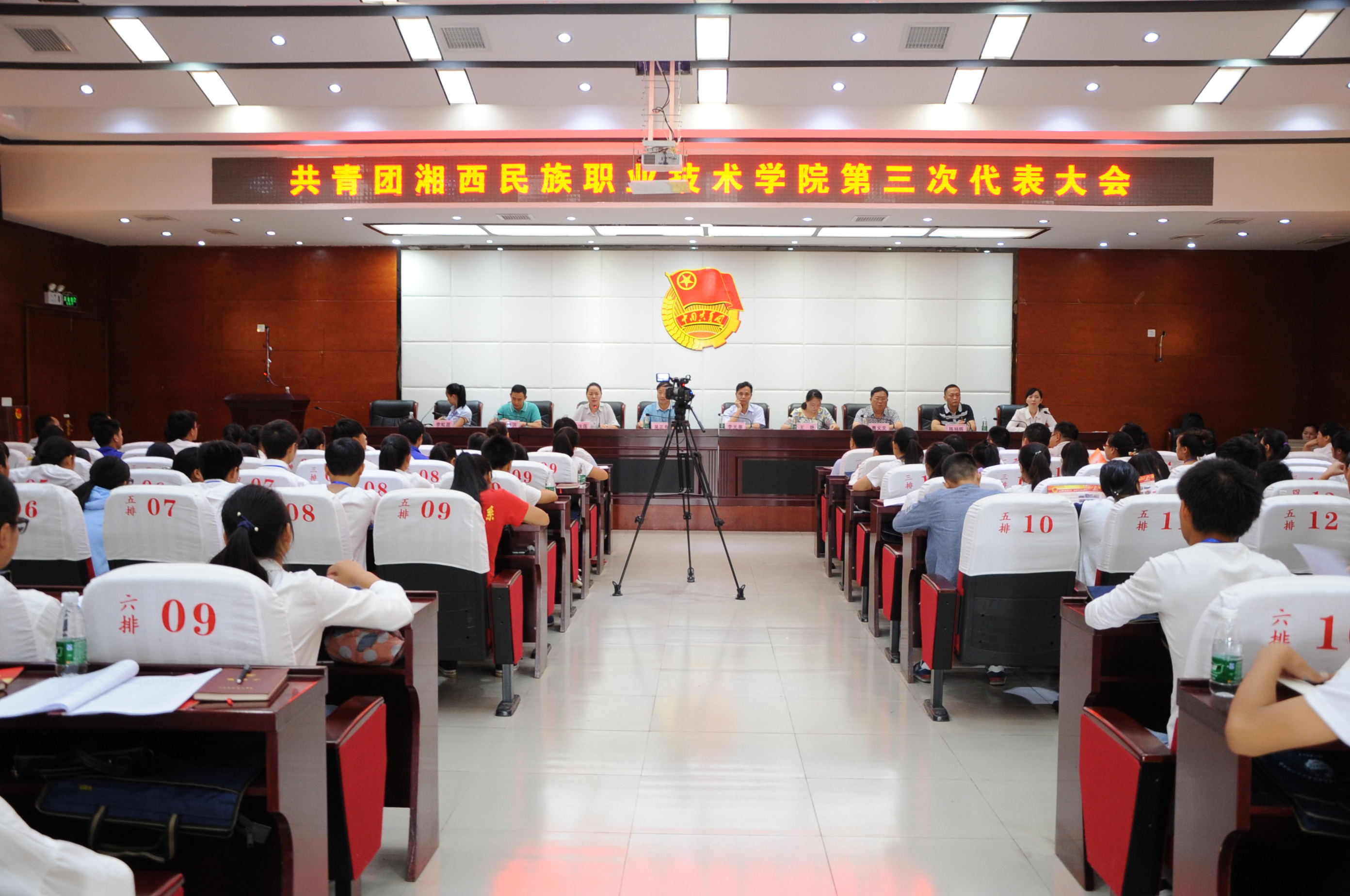 7月6日上午,共青团湘西民族职业技术学院第三次代表大会在D区会议室召开。院党委书记吴正有、院长李光寒、团州委书记向汝莲、吉首大学团委书记王艳、院党委副书记曹义文、院纪委书记刘修洪、院工会主席陈杨晖、团市委书记刘柳等领导出席了会议,各团支部代表、兄弟单位代表等200余人参加了会议。