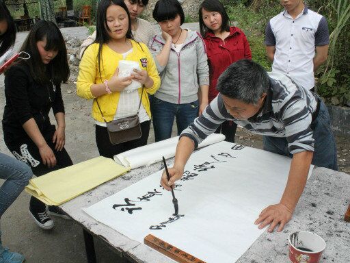4月25日下午,书画协会在指导老师钟高英的带领下来到了吉首市曙光村参观英雄烈士纪念碑。通过缅怀革命烈士,深化爱国主义教育,引导青年树立正确的世界观、人生观、价值观。老师用娴熟流畅的笔法表达对抗日英雄的深切掉念。书法协会的同学们也纷纷用平日里学到的书法技能,大展身手,以刚劲有力的笔迹书写着内心想要表达的情感。活动结束后,钟老师将书法作品赠送给参加本次活动的学生们。