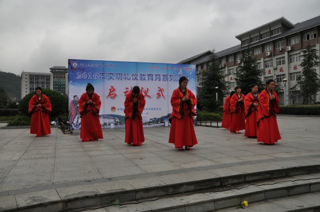 为大力弘扬传统文化,全面提高我院学生的思想道德素质和文明素养,营造“知荣辱、重礼仪、讲文明、懂感恩”的良好氛围,2016年11月22日下午,院团委在学院中心广场举行了“文明礼仪教育月系列活动”启动仪式,500余名学生参加了启动活动。