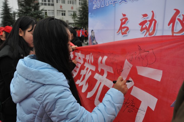 活动中,院团委副书记欧阳杰作了讲话,国学社同学表演了手语舞《跪羊图》,应用外语系学生诵读了国学经典《弟子规》,学生代表石艳宣读了文明礼仪倡议书,全体学生在“文明礼仪我先行”横幅上郑重签下自己的名字以示承诺。与此同时,各班利用团课时间观看了名家讲座《弟子规讲解》,很好地接受了传统文化的洗礼。