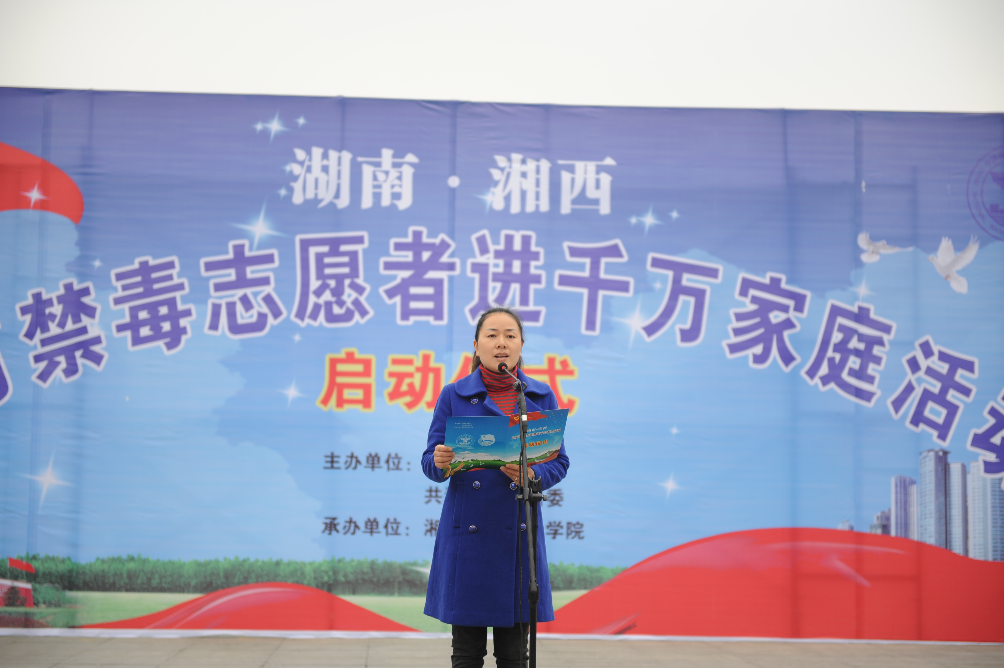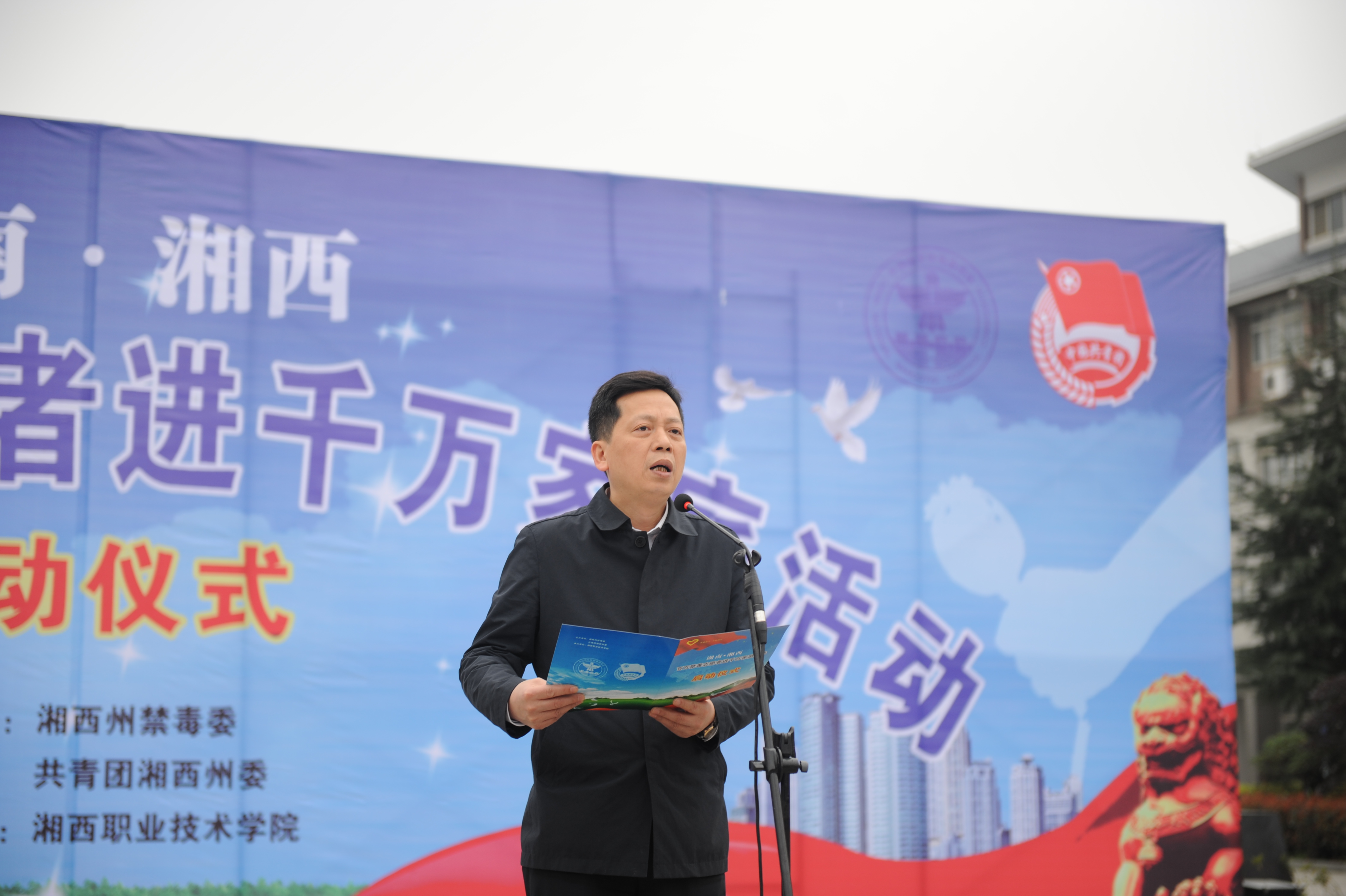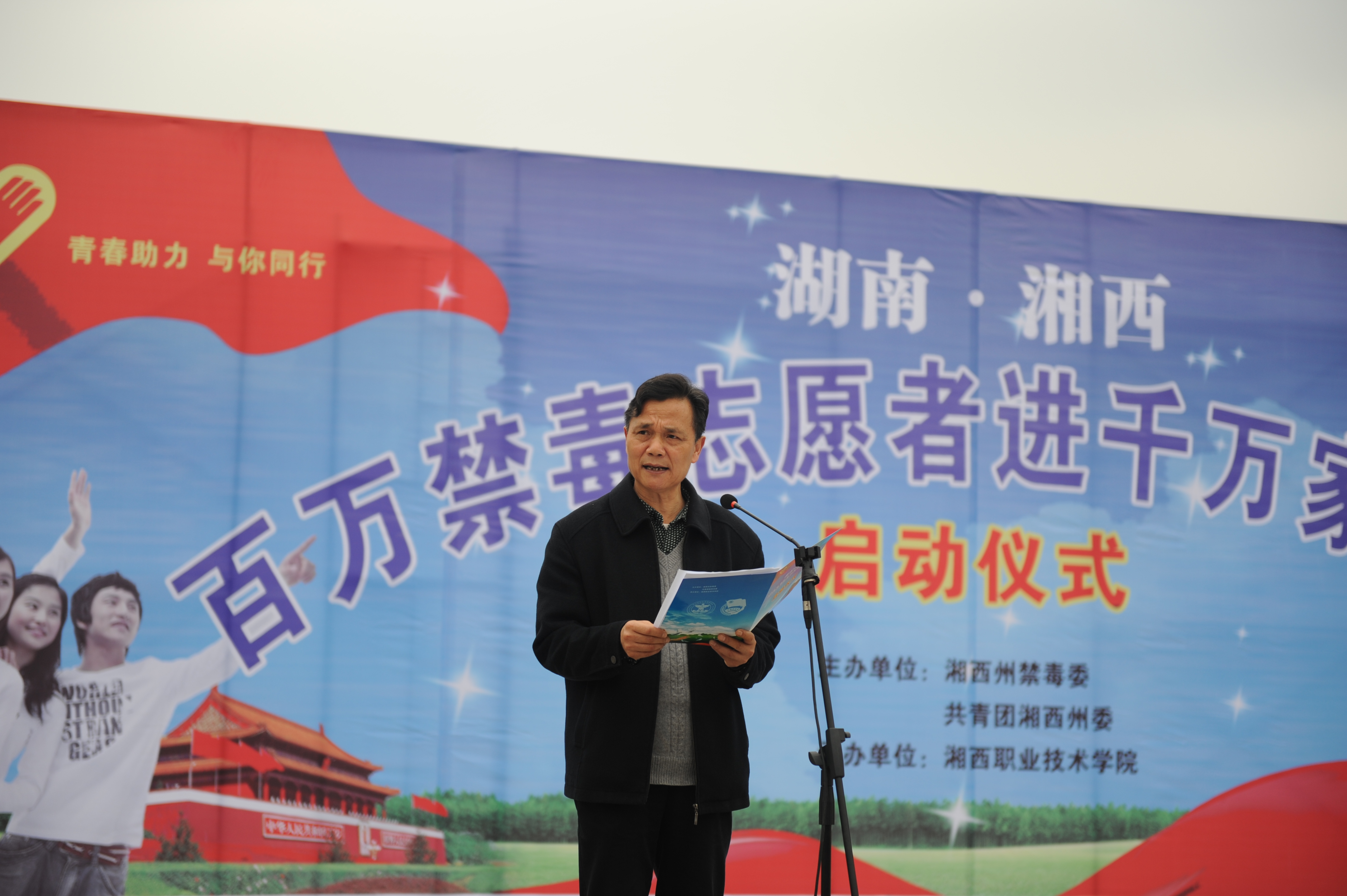 3月7日,“青春助力,与你同行”湘西州百万禁毒志愿者进千万家庭活动在湘西职院启动。副州长、州公安局局长、州禁毒委员会常务副主任唐恒忠出席启动仪式,湘西职院院长李光寒主持启动仪式。州禁毒委、团州委、湘西职院师生、禁毒志愿者等2000人参加启动仪式。