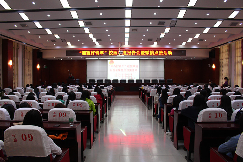 4月24日上午“湘西好青年”事迹报告会校园巡讲暨微信点赞活动第一站在我院顺利举行,我院近200名学生参加了报告会。