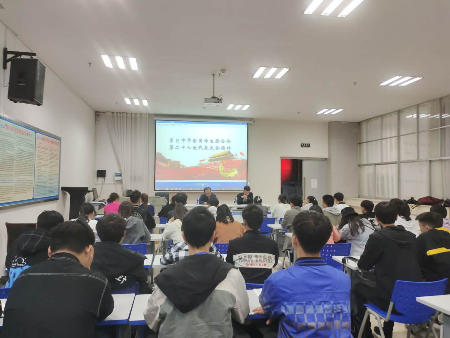 2020年10月14日下午,院团委于图书馆一楼召开会议,组织学习中华全国学生联合会第二十七次代表大会精神,院团委干事杨凡老师、院团委兼职副书记向文睿及院团委全体学生团干参加,会议由杨凡老师主持。