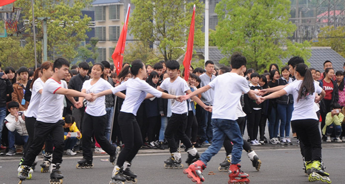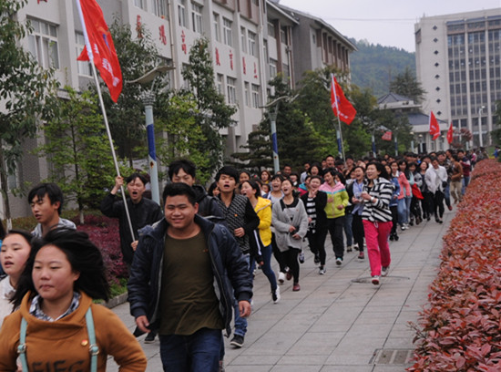 在观看完韵律操《小苹果》、轮滑《舞动青春》节目表演后,400余名师生在旗手带领下,喊着“我运动,我健康,我快乐”口号围绕校园慢跑一圈,共同拉开了湘西职院“三走”活动的序幕。