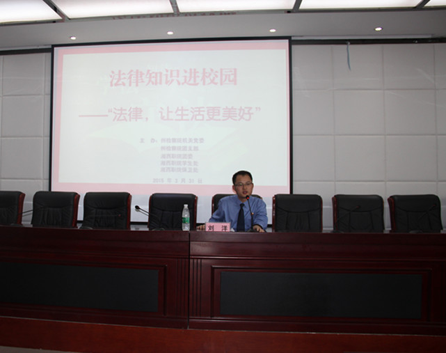 3月31日下午,学院团委、学生处、保卫处联合州检察院团支部在我院教学楼D区会议室举办了法制宣传进校园活动——特邀州检察院刘洋检察官为我院150余名学生开展法制教育讲座。