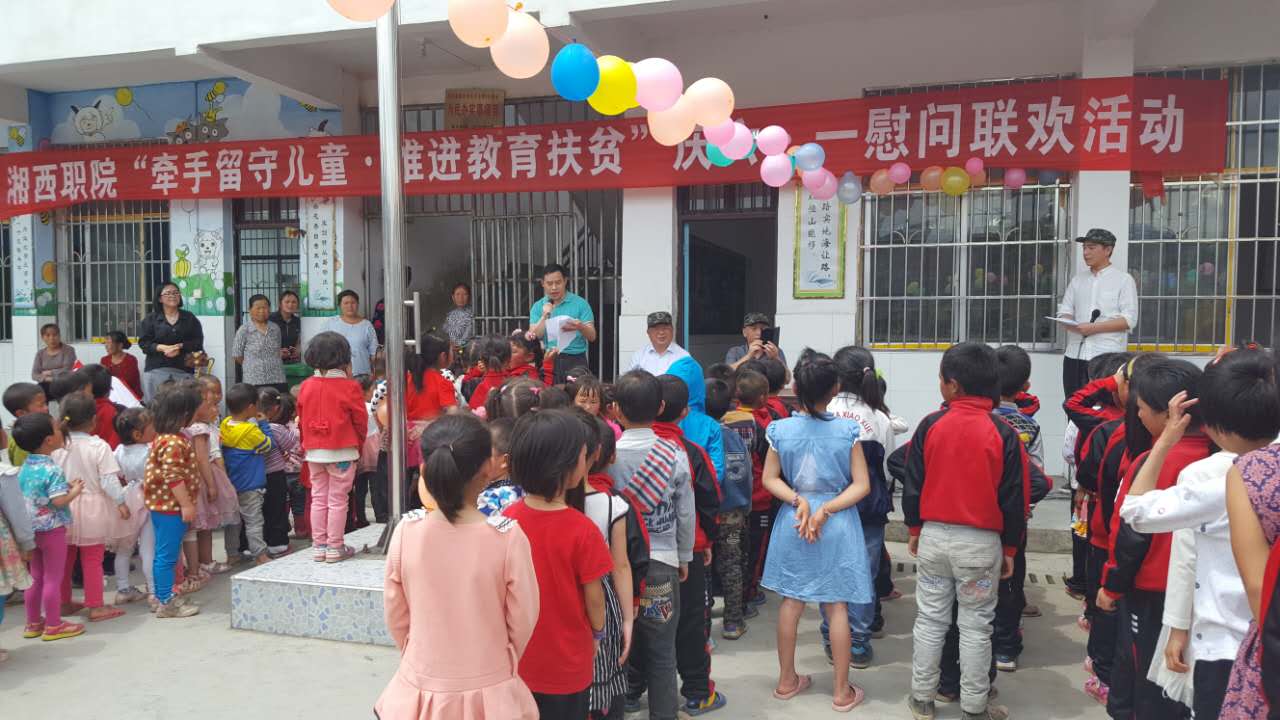 5月31日,在六一国际儿童节到来之际,为落实习总书记精准扶贫重要指示,推进教育扶贫的具体措施,30余名职院师生带着所有职院人真诚的问候与美好的祝福走进学院扶贫联系点凤凰县腊尔山镇苏马河村、大塘村,开展“牵手留守儿童,推进教育扶贫”庆六·一联欢活动。