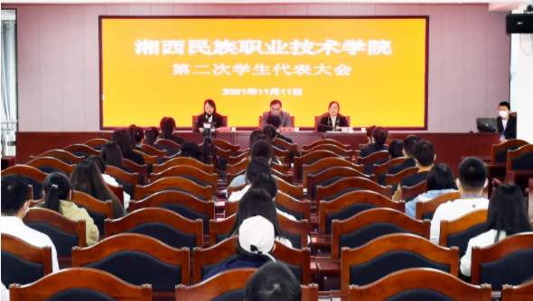 11月11日,湘西民族职业技术学院第二次学生代表大会在学院连廊会议室顺利召开,学院党委委员、副院长姚斌,学院团委书记王丹子,团委副书记李虹昆出席会议,117名学生代表参加了此次会议,王丹子主持会议。