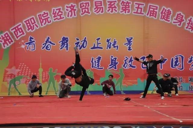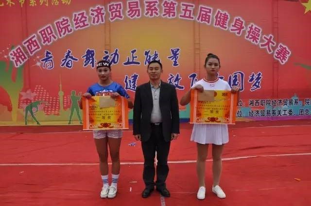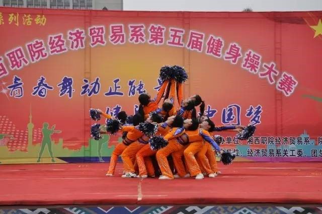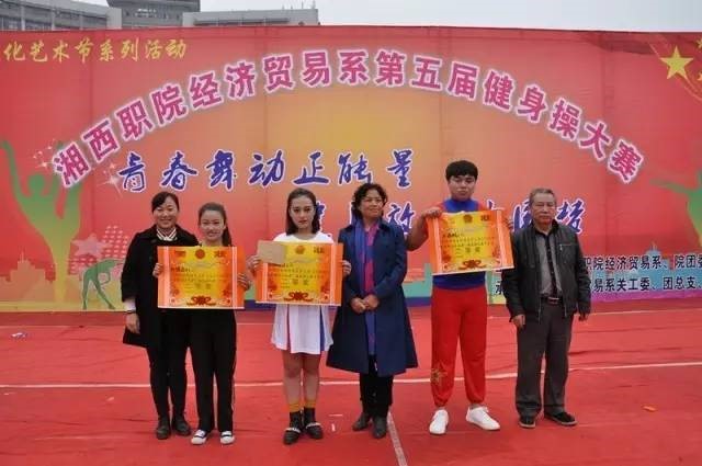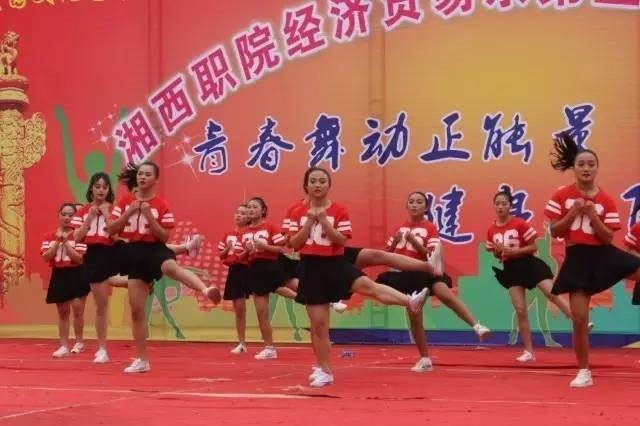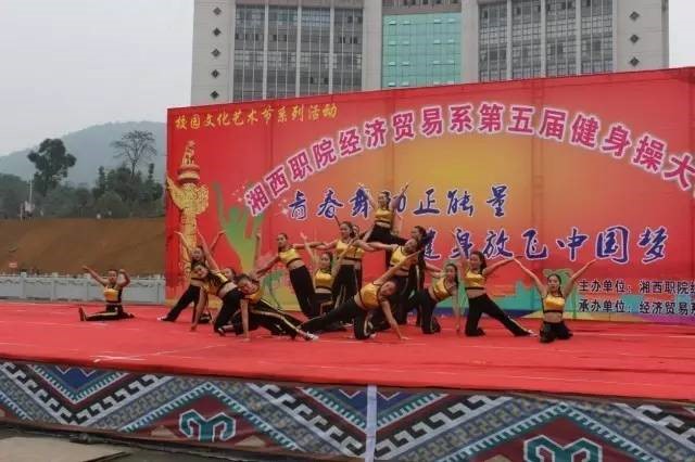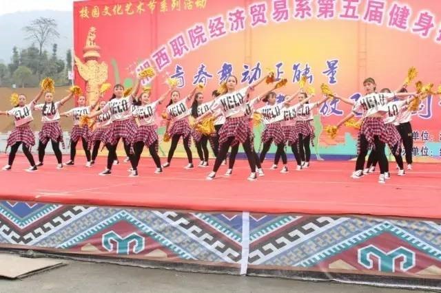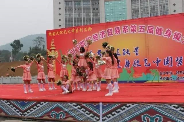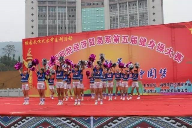 11月15日,经济贸易系在学院演艺广场举办了湘西职院第四届校园文化艺术节系列活动——“舞动青春正能量”健身操大赛。学院党委委员、纪委书记刘修洪,党委委员、工会主席陈杨晖,有关部门负责人及系部1400余名师生共同观看了比赛。