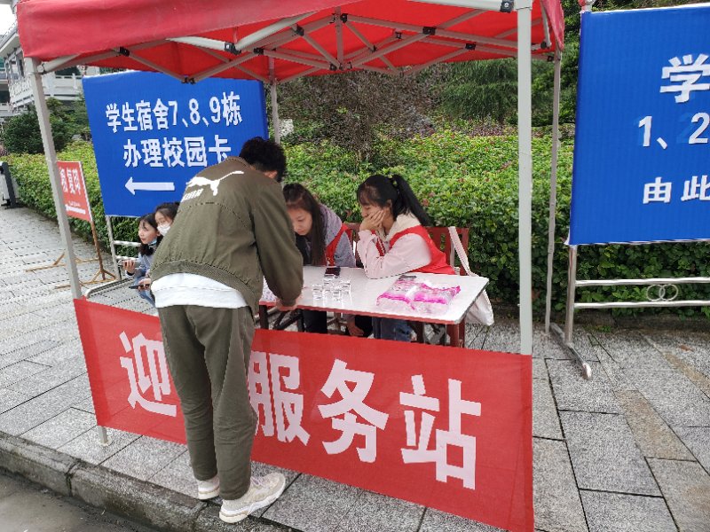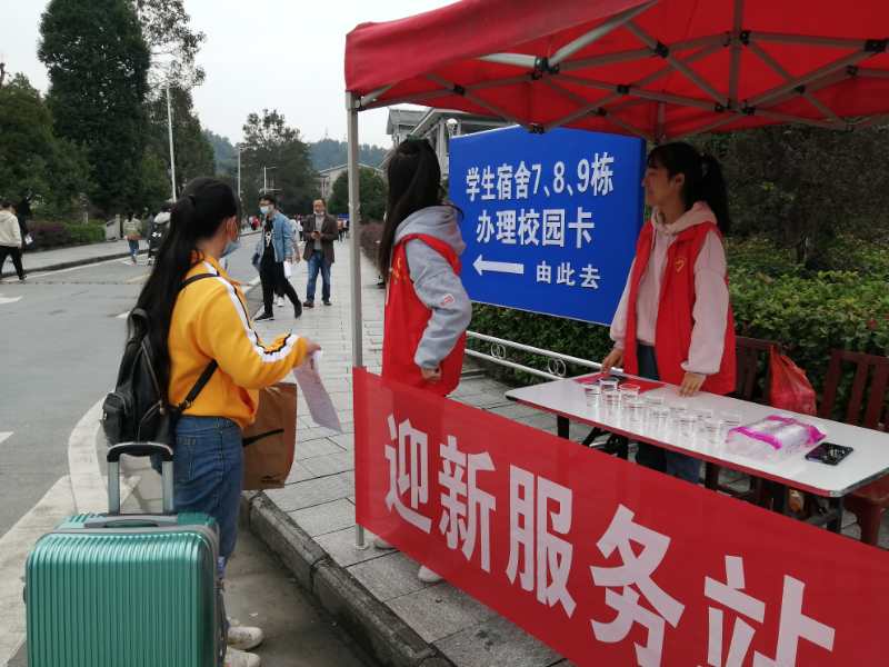10月9日,为迎接三年制网招生新生来我院就读,方便新生及新生家长报名、入寝,我院团委组织学生志愿者在学院大门口和图书馆前设立迎新点,为新生及新生家长提供饮水及咨询服务。