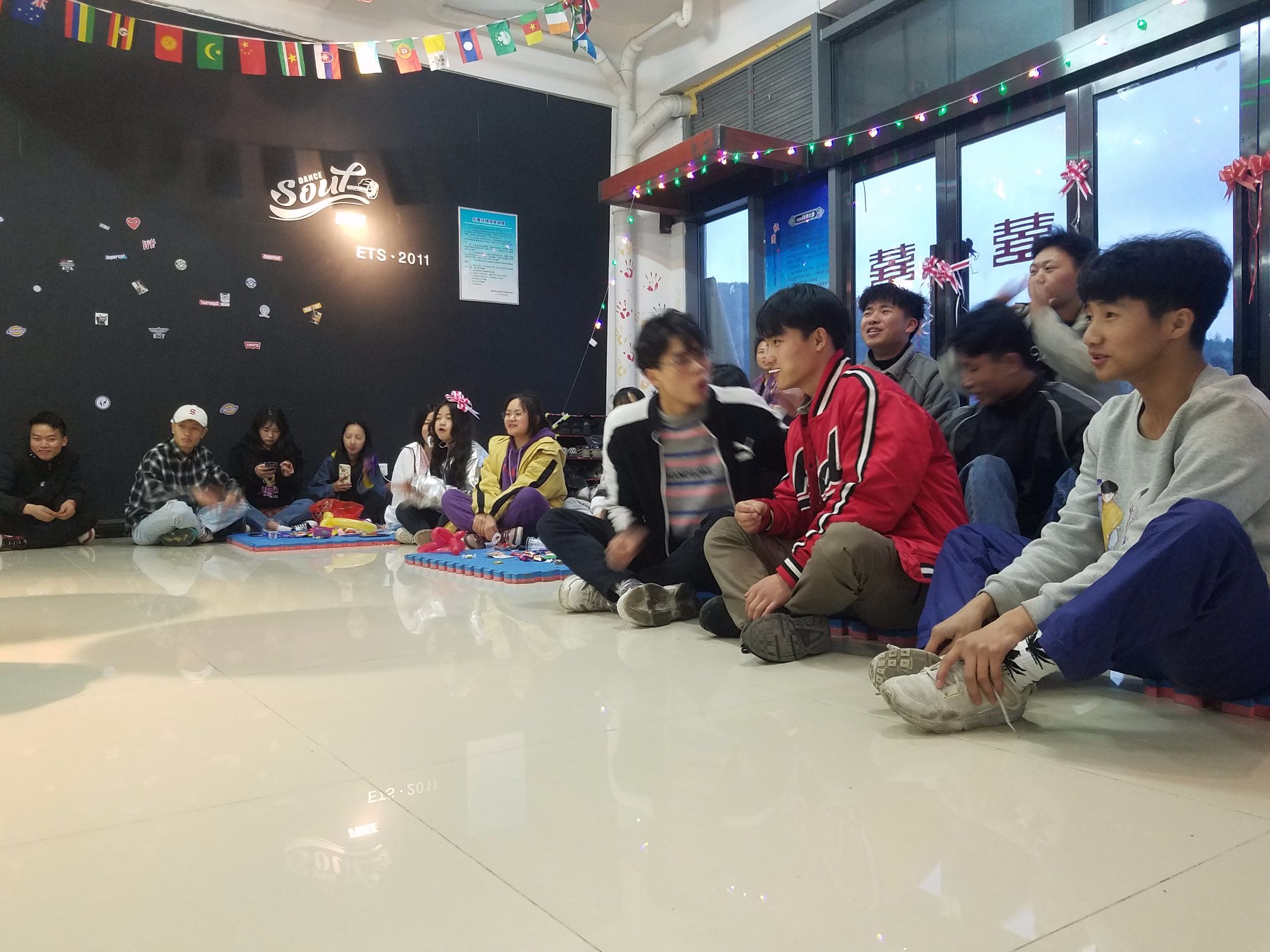 活动开始前,社团成员席地而坐,由社团干部分发零食和饮料,然后由主持人宣布街舞社八周年庆祝活动正式开始!
