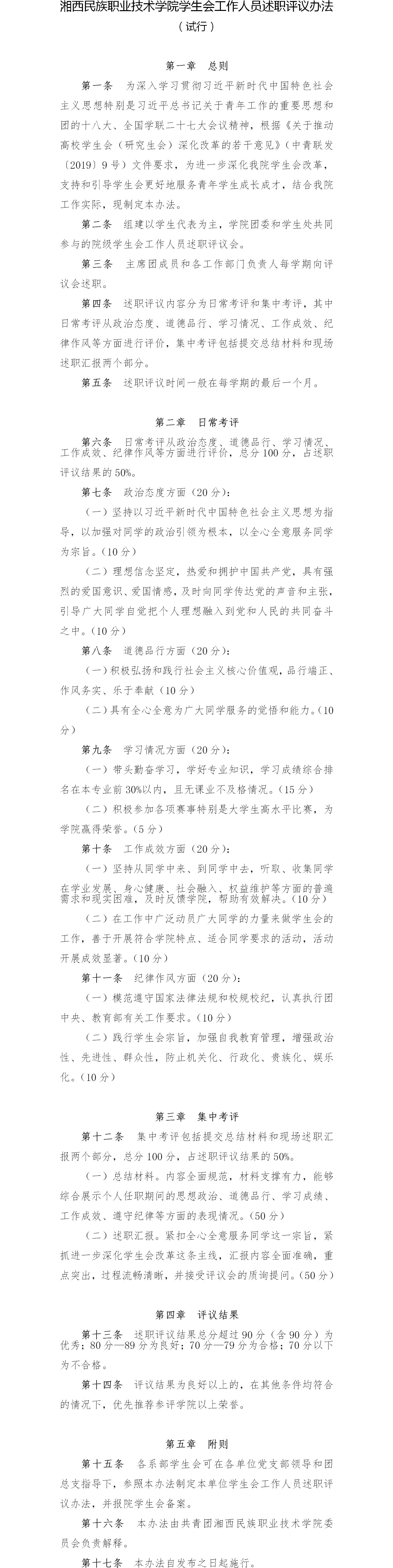 湘西民族职业技术学院学生会工作人员述职评议办法