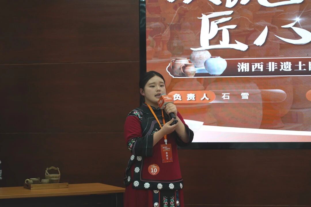 经过激烈角逐和评委认真评审,最终决出了一等奖5名、二等奖8名、三等奖若干名。其中,我校湘西州经济贸易学校学生凭借作品《扎根土陶 向阳而生》荣获一等奖。