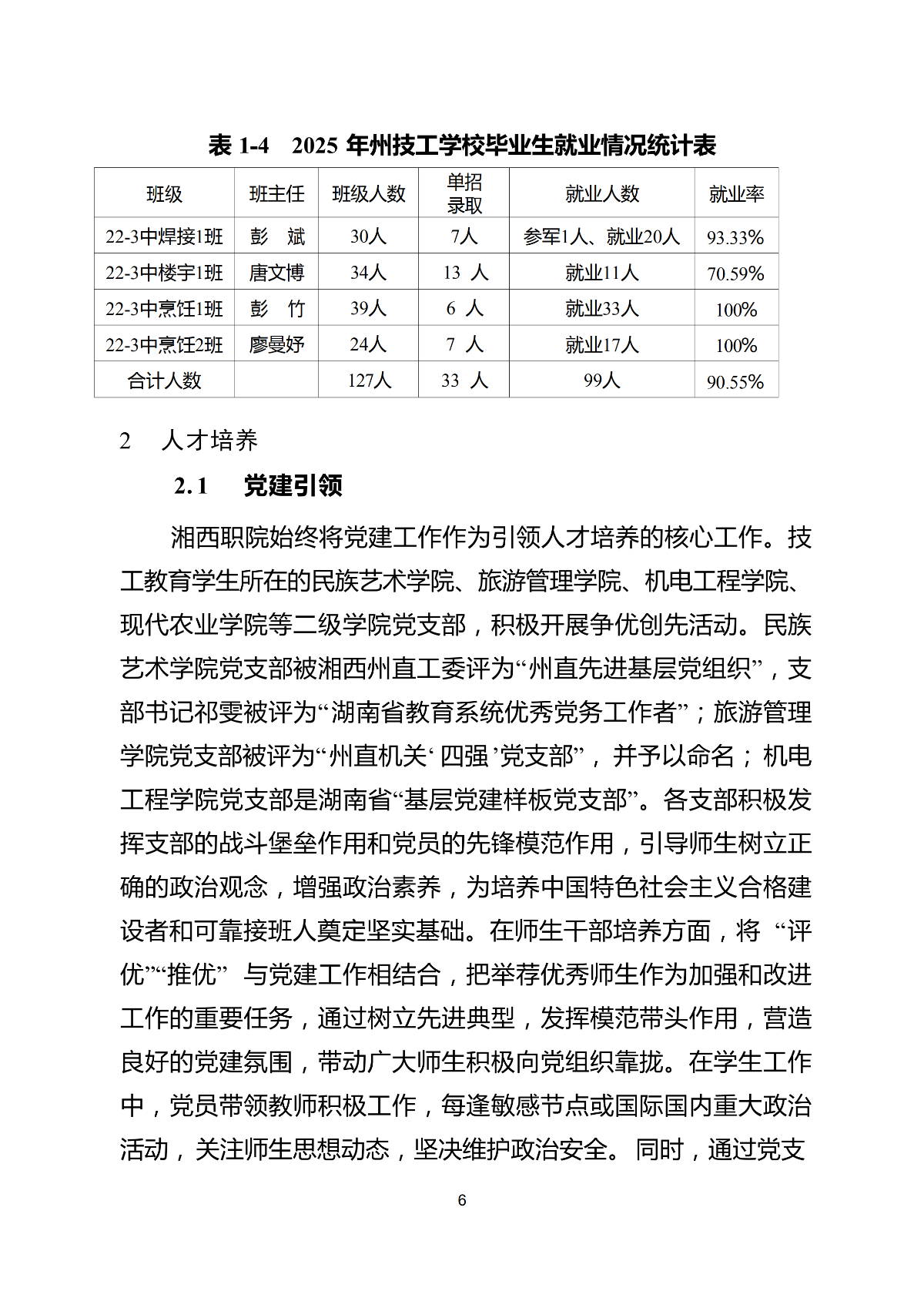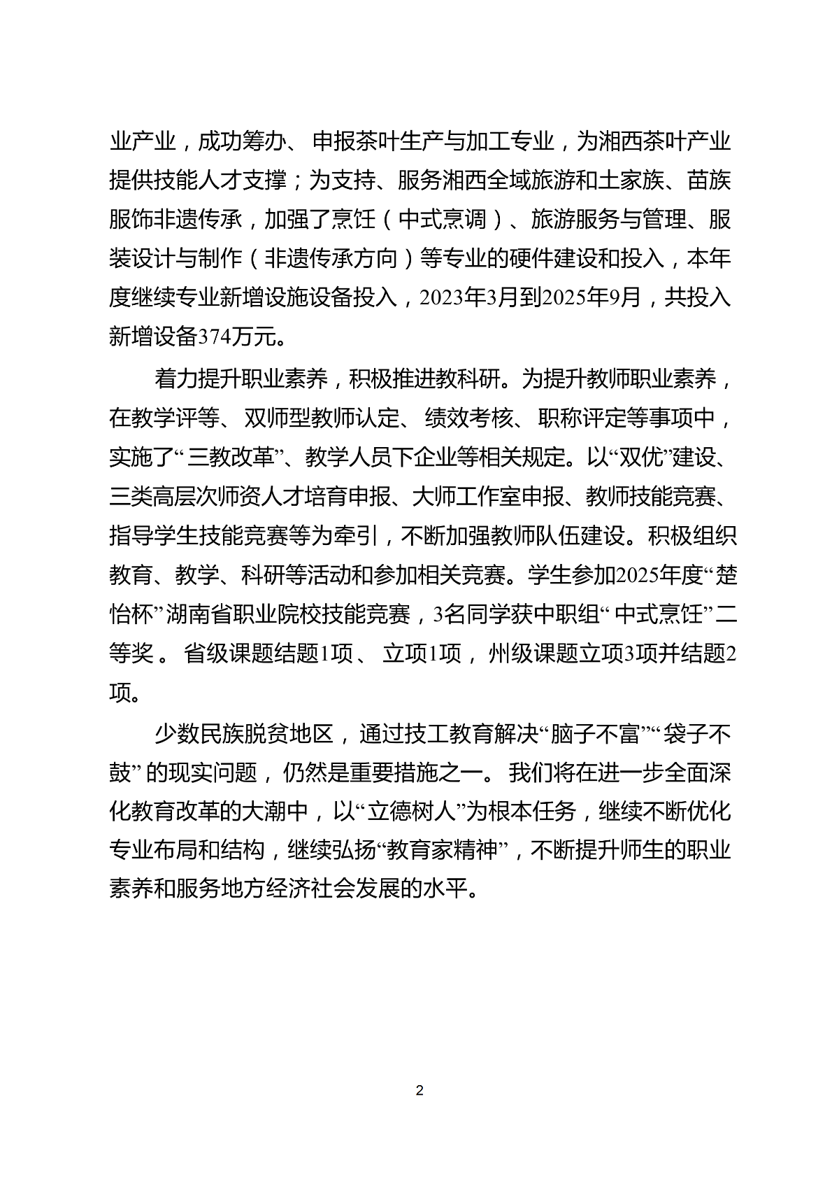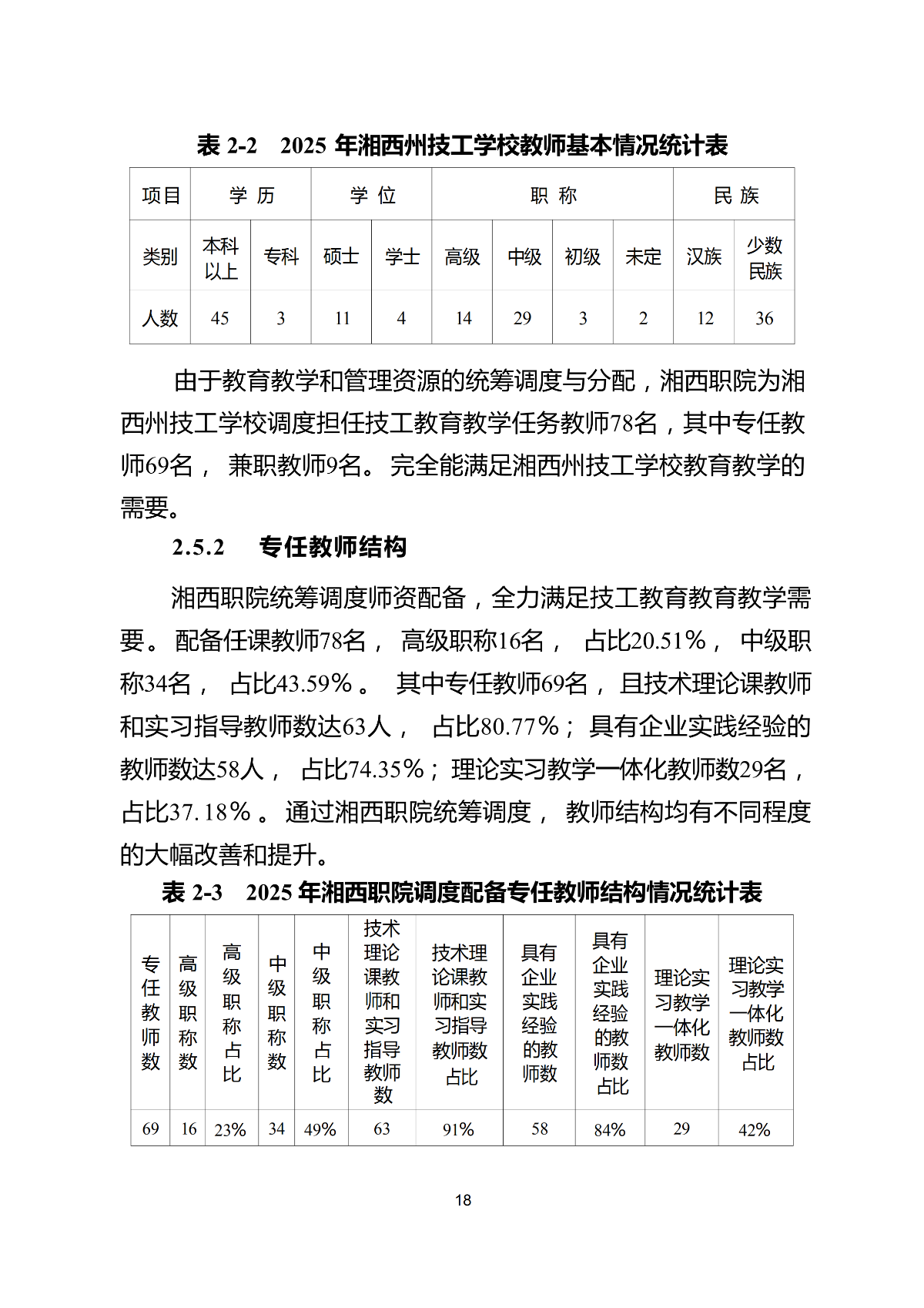 湘西土家族苗族自治州技工学校技工教育2025年度质量报告