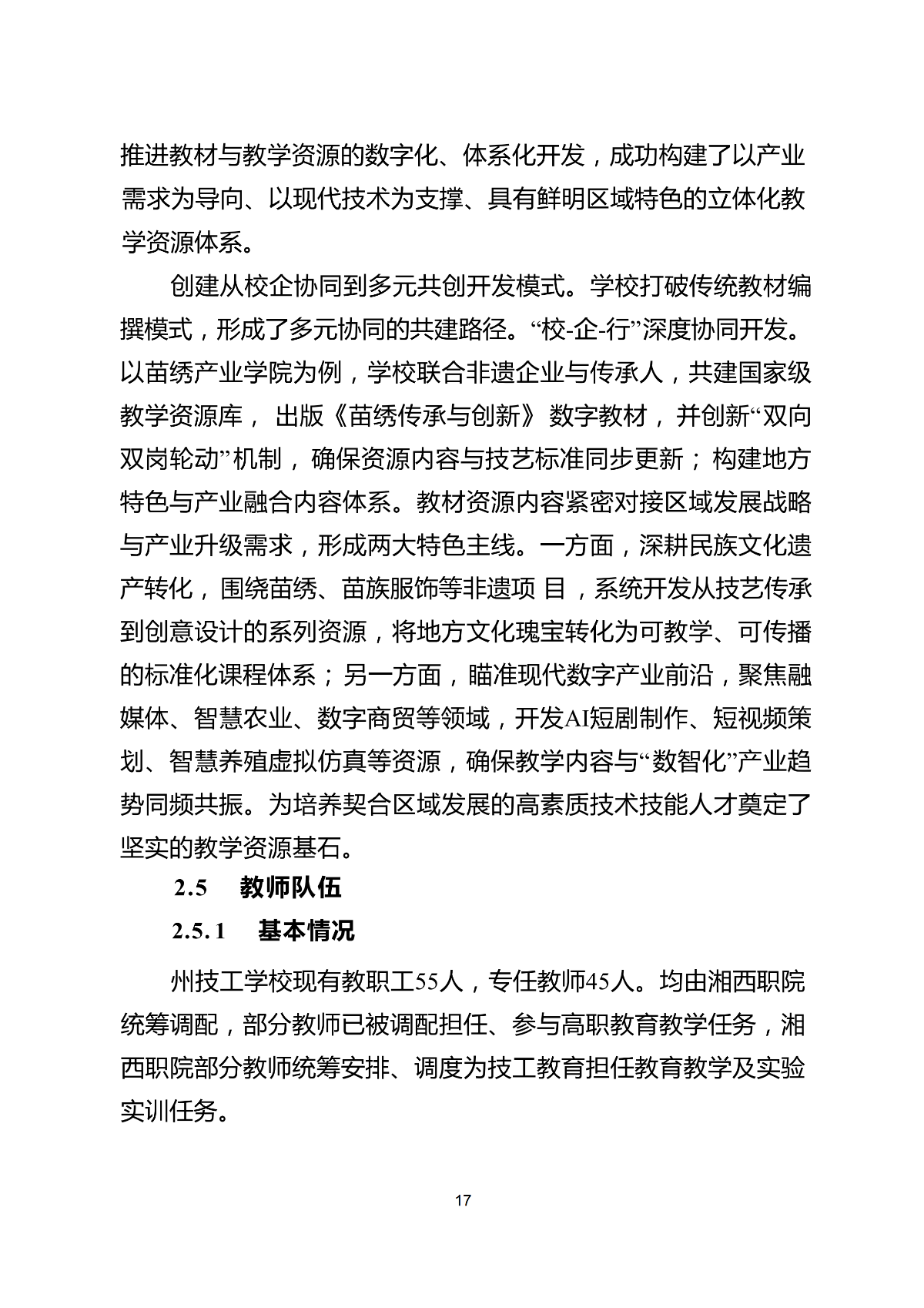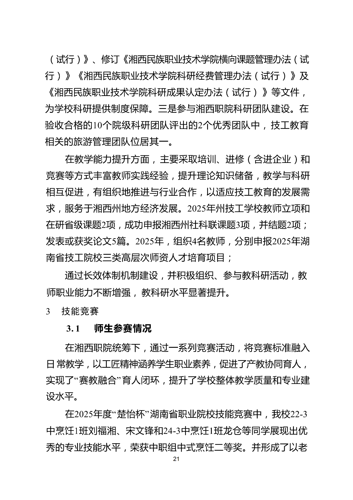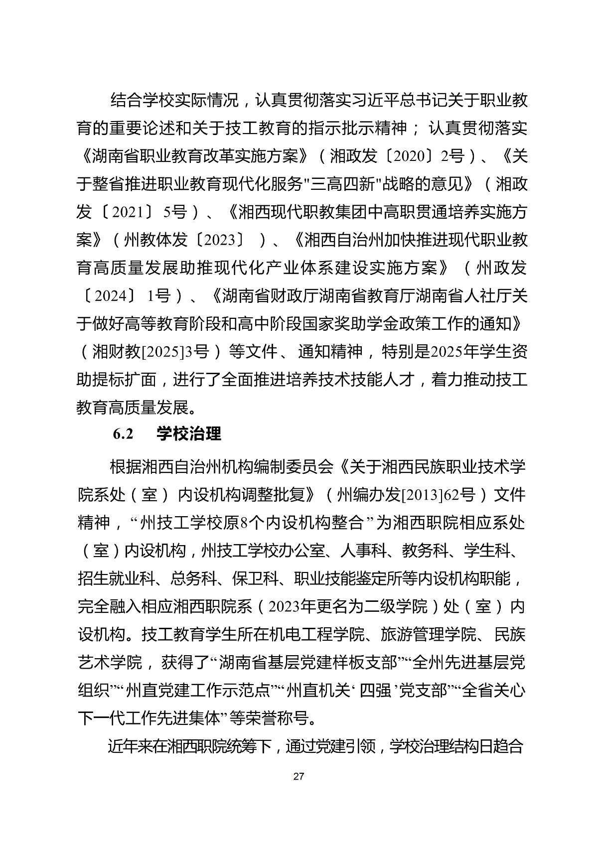 湘西土家族苗族自治州技工学校技工教育2025年度质量报告