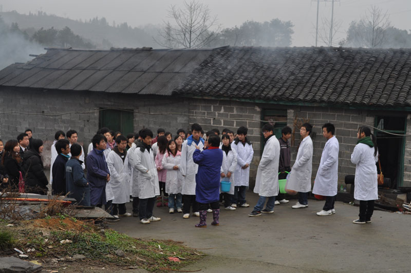 3 月25日 ,在我院畜牧专业的专家、贺宋文教授的带领下,我院畜牧专业学生来到凤凰县重点生猪养殖基地——吉信镇西门峡猪场,为养殖场的一百多头生猪进行了检查,并帮助养殖户对生猪做了阉割手术。由于该场技术力量不够,生猪养殖发展较慢,我院畜牧专业了解到这一情况后,主动与养殖场取得联系,免费上门为农户提供技术服务。此次支农活动充分发挥了我院的专业技术优势,服务了地方经济,深受当地群众的欢迎与好评。
