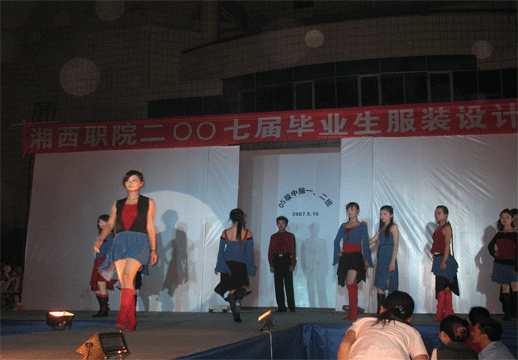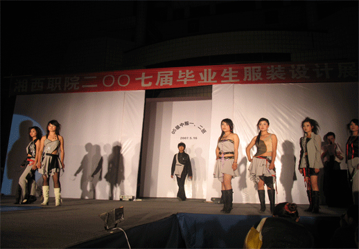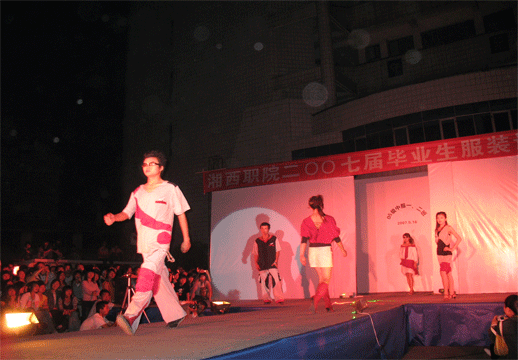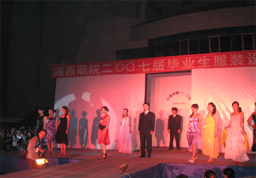 2007年5月16日,湘西民族职业技术学院首届服装专业毕业生举行了一次服装设计汇报展演活动。此次展演共分16个系列:有唐装、童装、休闲装、前卫服装、生活礼服、民族服装及晚礼服,款式新颖,都是同学们精心构想,用心设计,自己动手制作的作品,充分展示了学生们的动手能力及教学成果。