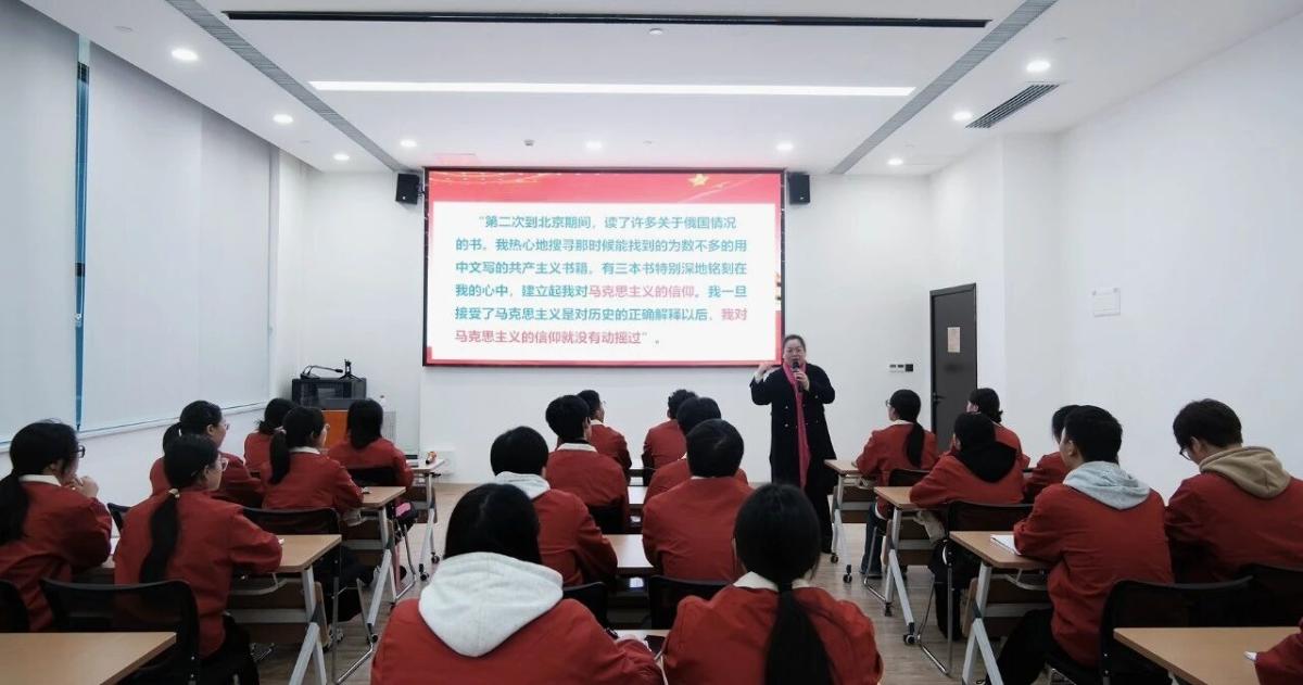 当日下午,培训以“红色光影+青春讲堂”的形式开展移动思政课。学员在嘉逸国际影城集中观看了红色电影《志愿军:浴血和平》,观影后,马克思主义学院副院长张敬亭讲授《从光影到灵魂:在〈志愿军〉的烽火中读懂抗美援朝精神的时代回响》专题思政课。
