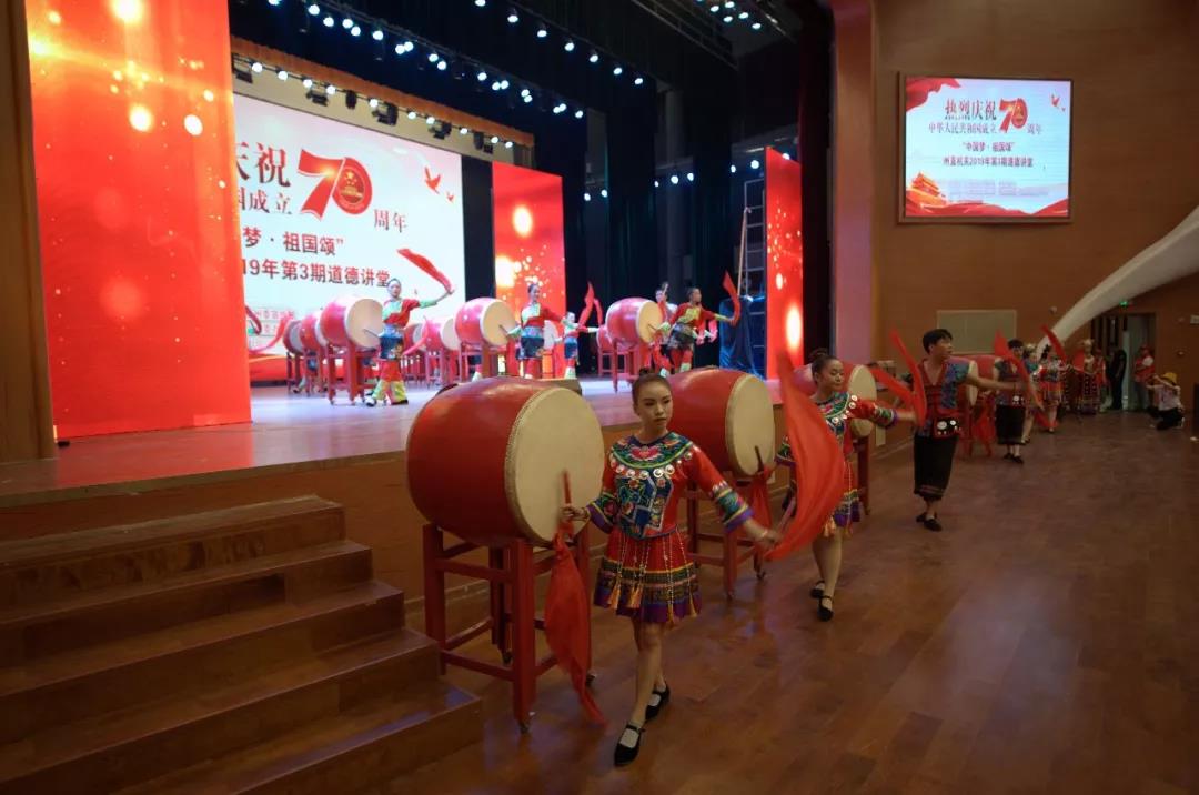 为庆祝中华人民共和国成立七十周年,深入贯彻习近平新时代中国特色社会主义思想和党的十九大精神,9月29日,由中共湘西自治州委办公室、湘西州财政局、湘西民族职业技术学院主办的州直机关2019年第3期道德讲堂在湘西职院举行。州委秘书长向邦伟,州委副秘书长戴蓉芳,州文明办主任苏明超,湘西职院党委副书记、副院长宋清华,湘西职院党委委员、副院长满益文,湘西职院党委委员、副院长钟明,州财政局党组成员、副局长杜红春,州财政局党组成员、副局长陈光彬,州文明办副主任喻阳,湘西职院党委委员、组织人事处处长宋武,湘西职院党委委员、宣传处处长曾翠林等出席本次活动,州直相关单位代表1000余人参加本次活动。