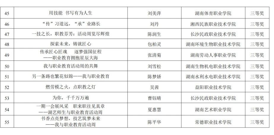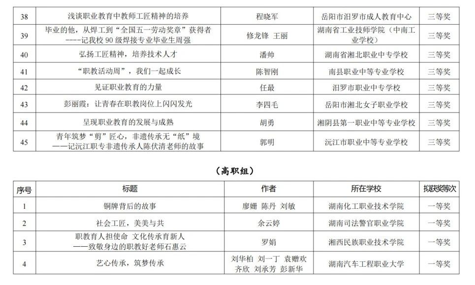 近日,从省教育厅传来喜报。在全省职业教育活动周主题征文活动中,我校罗娟老师作品《职教育人担使命,文化传承育新人------致敬身边的职教好老师石惠云》一文斩获高职组一等奖,我校刘丹老师作品《“传”习道远 “承”业路长》一文斩获高职组三等奖。