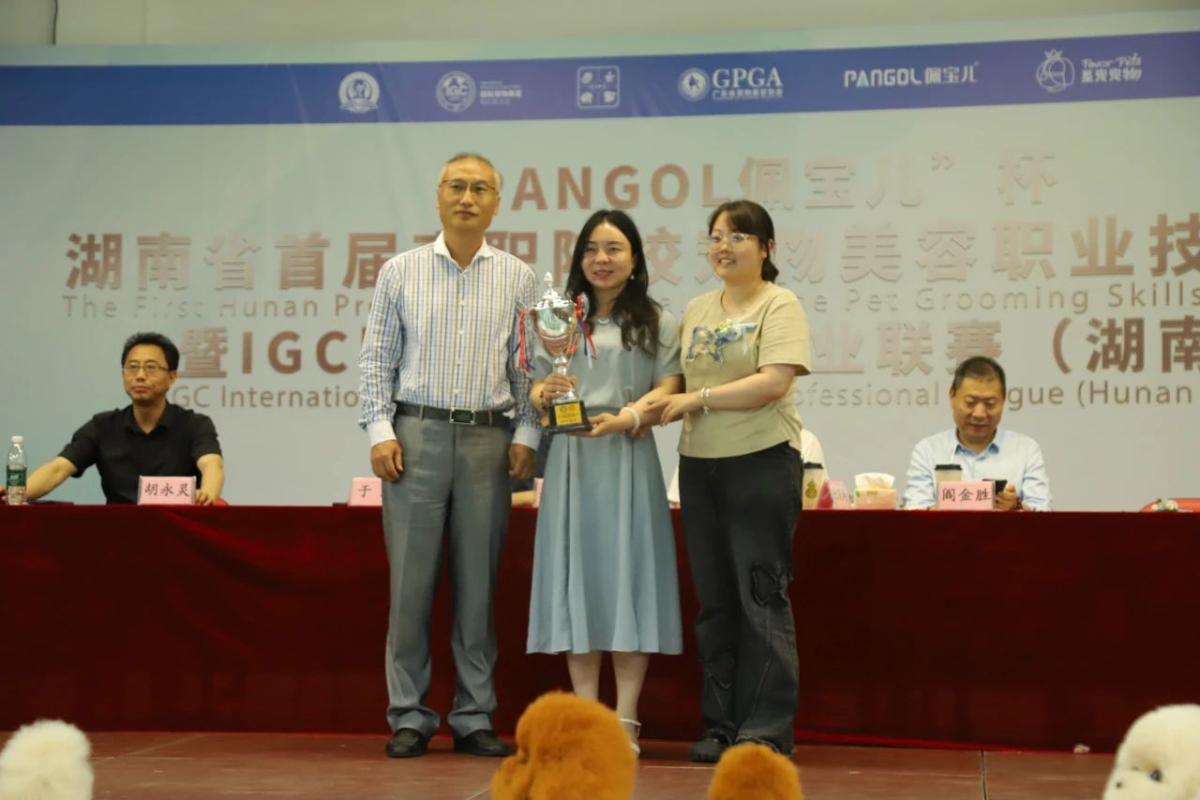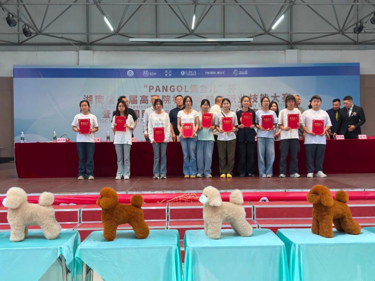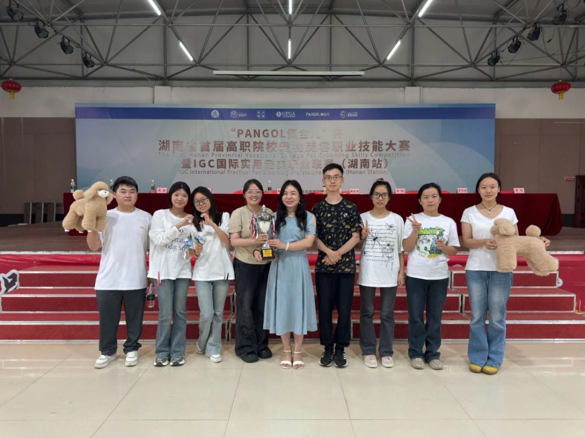 6月11日,湖南省首届高职院校宠物美容职业技能联赛暨“PANGOL佩宝儿”杯IGC实用宠美职业联赛在衡阳圆满落幕。我校现代农业学院宠物专业6名学生,荣获“特等奖”5项、“一等奖”1项;我校获团体“银奖”奖杯。其中,龙秋华、石元媛、周婧葳3名“特等奖”学生成功晋级在广州举办的2025世界职业技能大赛宠物美容赛项竞赛!展现了我校在宠物美容专业领域的卓越教学成果。
