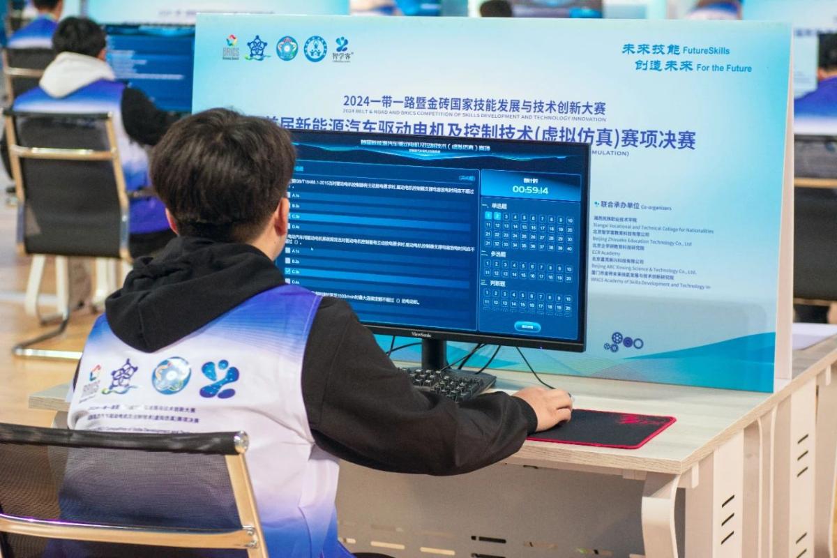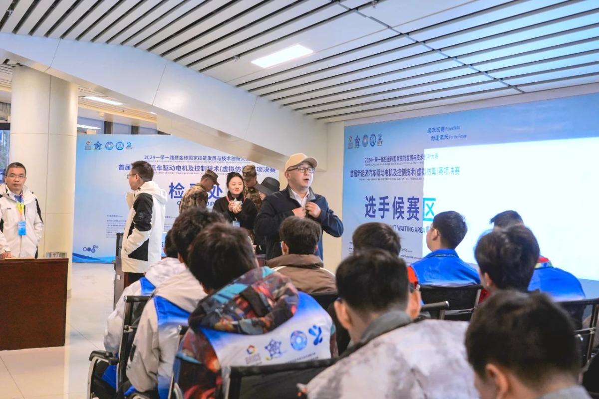 一带一路暨金砖国家技能发展与技术创新大赛首届新能源汽车驱动电机及控制技术(虚拟仿真)赛项决赛,于11月30日在湘西民族职业技术学院体育馆火热举行。