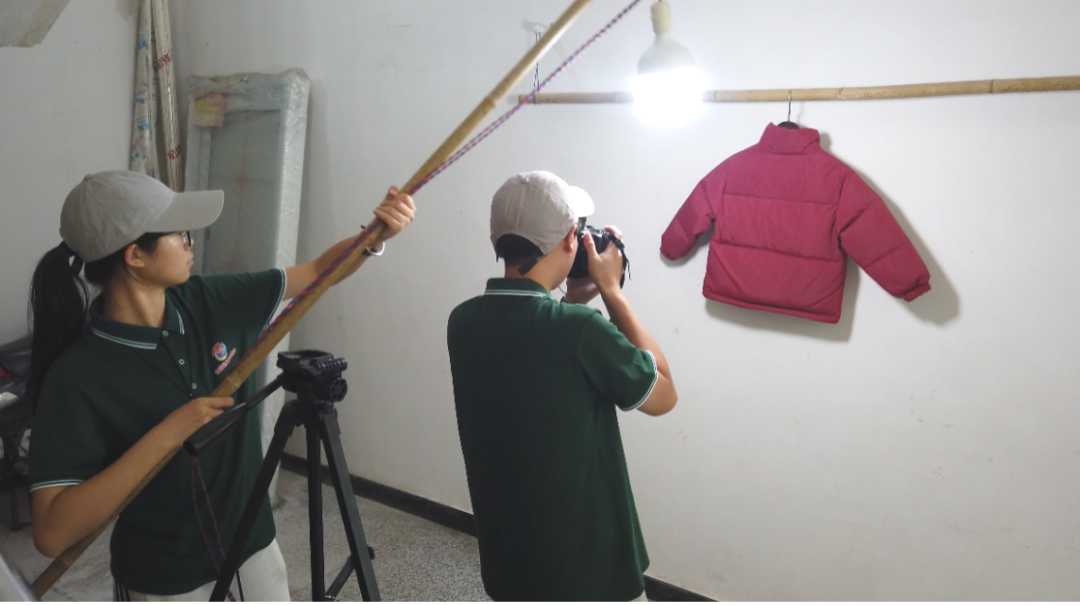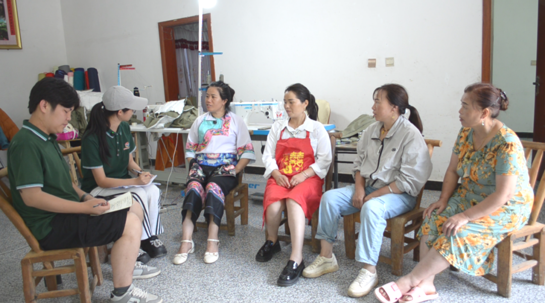 走访过程中,针对苟拐村服装工坊绣娘群体因语言表达导致的产销困境,志愿者以实用场景为切入点:将“绗缝”“充绒量”等术语配以苗语释义,通过反复教读强化记忆。同时,开展订单沟通模拟教学,指导他们用普通话自信表达:“我们手工填充羽绒,均匀又保暖,这是苗乡的老手艺”;并在志愿者协助下拍摄制衣短视频、制作商品图文手册,讲述“让更多人穿苗乡温暖”的故事,让传统技艺化作乡村振兴的产业火种。