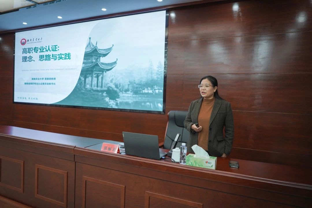 郭丽君以《高职专业认证:理念、思路与实践》为题作专题讲座。她从专业认证内涵、专业认证理念、专业认证思路、专业认证实践四个方面进行了讲解,为我校加强专业建设、科学开展高职专业认证工作提供了有益的借鉴和启发。