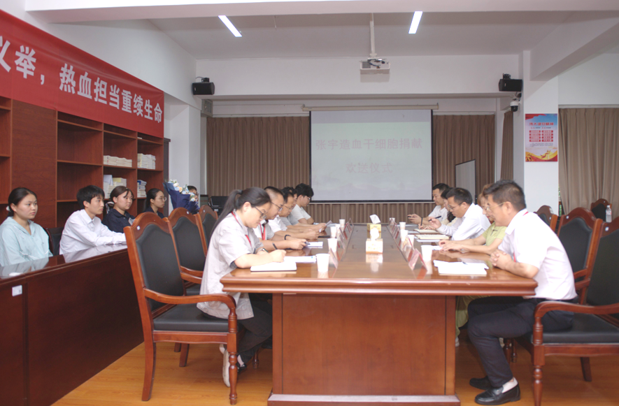谢绍猛、杨文波分别为张宇佩戴绶带并赠送鲜花。张宇在发言中分享了自己加入中华骨髓库和决定捐献的心路历程,从得知配型成功时的震撼,到决定捐献时的毅然。他表示:“作为一名中共党员,能为他人带去生的希望,是我最骄傲的事。”他的大爱精神赢得现场热烈掌声。