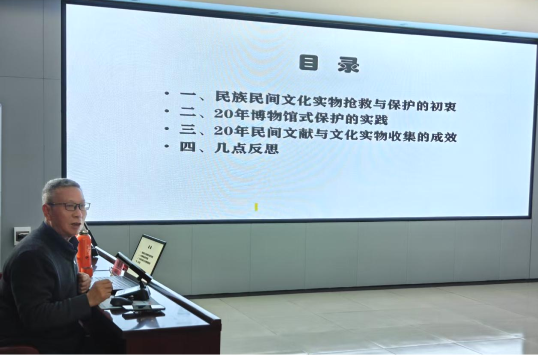 讲座中,李晓明教授分享了他二十年来在“博物馆式”保护方面的实践经验,介绍了他在民间文献与文化实物收集方面的成效,展示了他收集的家谱、碑刻、契约文书等珍贵资料,不仅丰富了民族民间文献宝库,也为研究多民族地区的历史文化提供了重要材料。