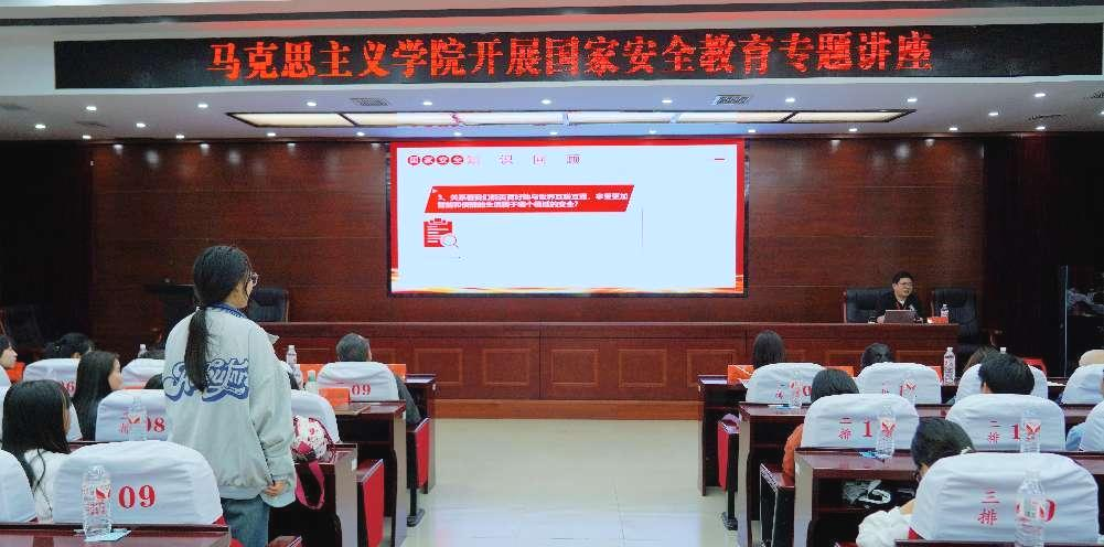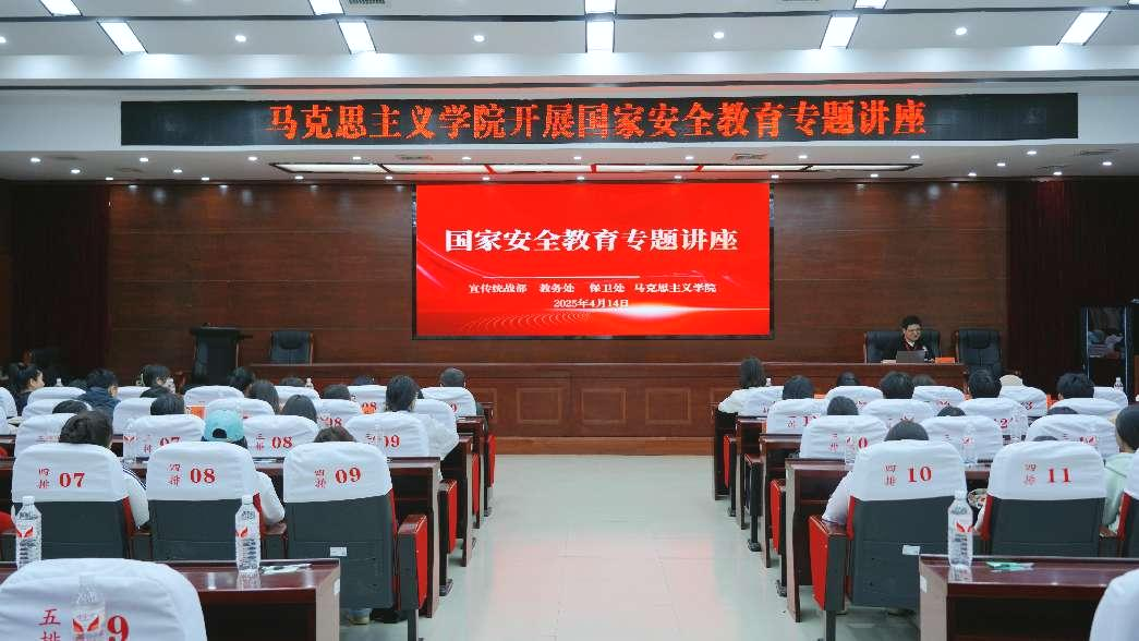 4月14日,在第十个全民国家安全教育日到来之际,我校马克思主义学院在D区报告厅举办了“全民国家安全教育 走深走实十周年”专题讲座。本次讲座由宣传统战部、教务处、保卫处协办,师生代表160余人参加活动,共同学习国家安全知识,凝聚维护国家安全的校园力量。