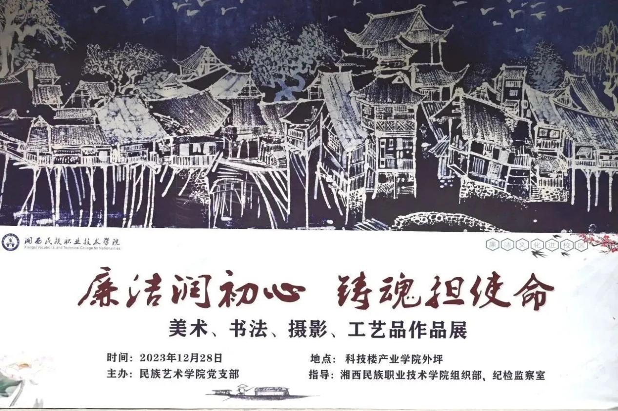 为深入推进“清廉校园”建设,打造廉洁文化精品,民族艺术学院于2023年12月28日下午,在科技楼一楼举办了以“廉洁润初心,铸魂担使命”为主题的美术、书法、摄影、工艺品作品展。