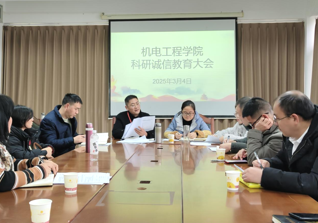 为进一步加强科研诚信建设,营造诚实守信的科研环境,我校机电工程学院于3月4日组织召开科研诚信教育会议。机电工程学院院长张俊丽、党支部书记孙彤,副院长汪海、陈波出席本次会议。