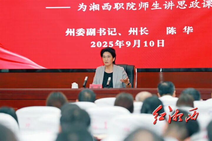 今天上午,湘西州委副书记、州长陈华围绕“高举新思想伟大旗帜 培育高素质时代新人”主题给湘西民族职业技术学院师生代表讲思政课。