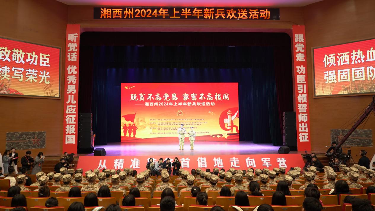 “脱贫不忘党恩,家富不忘报国!”3月13日上午,湘西民族职业技术学院演播大厅传来阵阵誓言,湘西土家族苗族自治州2024年上半年新兵欢送活动在此举行。