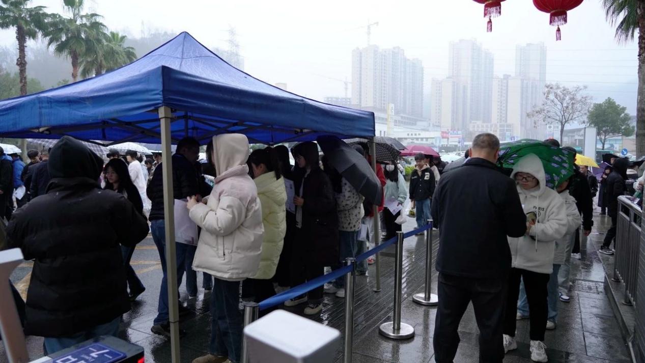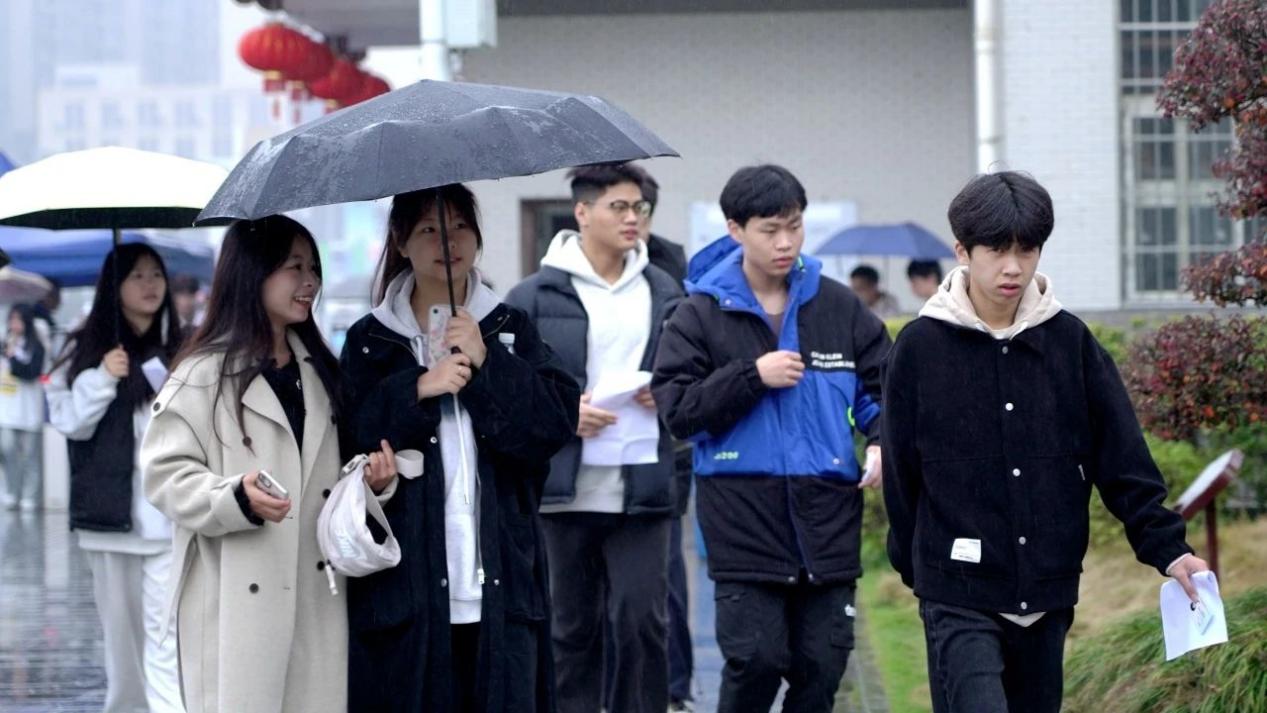 春雨霏霏中,考生们一大早在湘西职院大门口排队入场,整个考点工作井然有序。