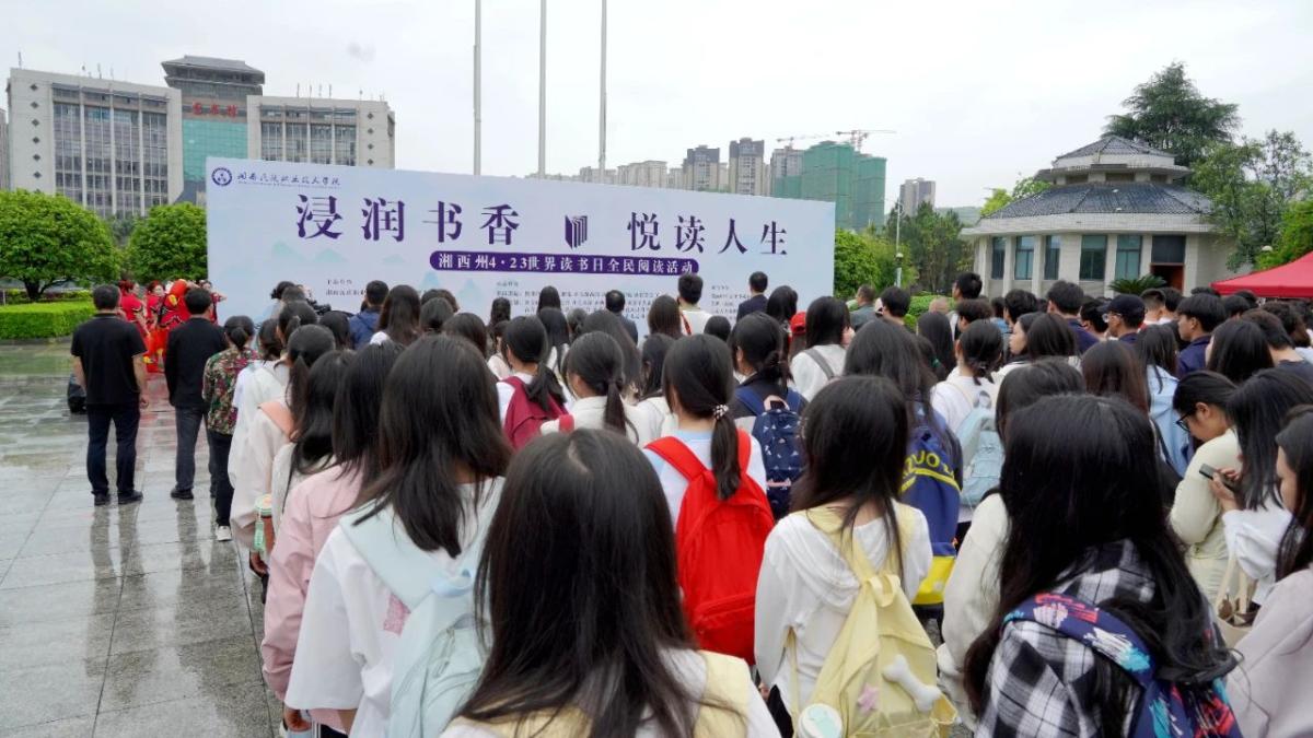 4月23日,湘西民族职业技术学院中心广场上,一排排精美的书籍整齐地罗列在各个摊位上,朗诵声、欢笑声此起彼伏。这是我校联合湘西州图书馆以“浸润书香•悦读人生”为主题,开展的湘西州全民阅读·共建书香湘西阅读推广系列活动现场。