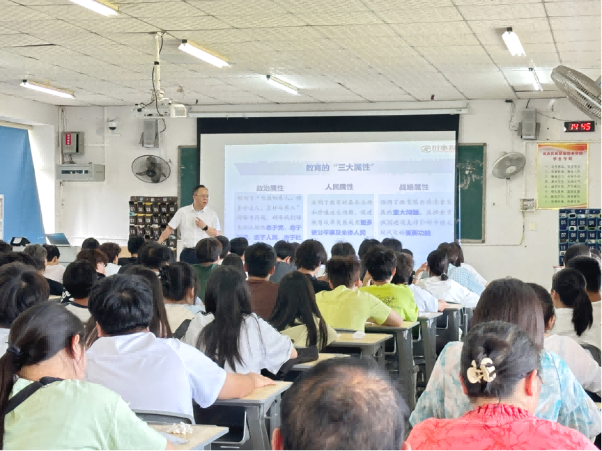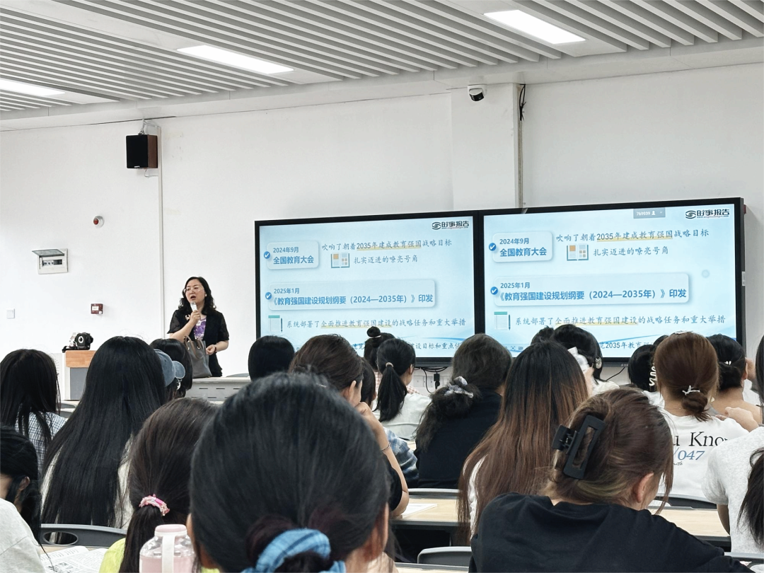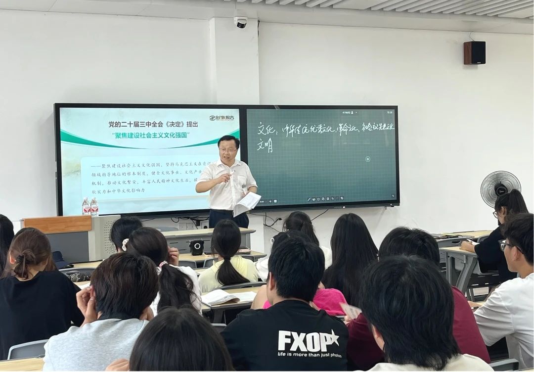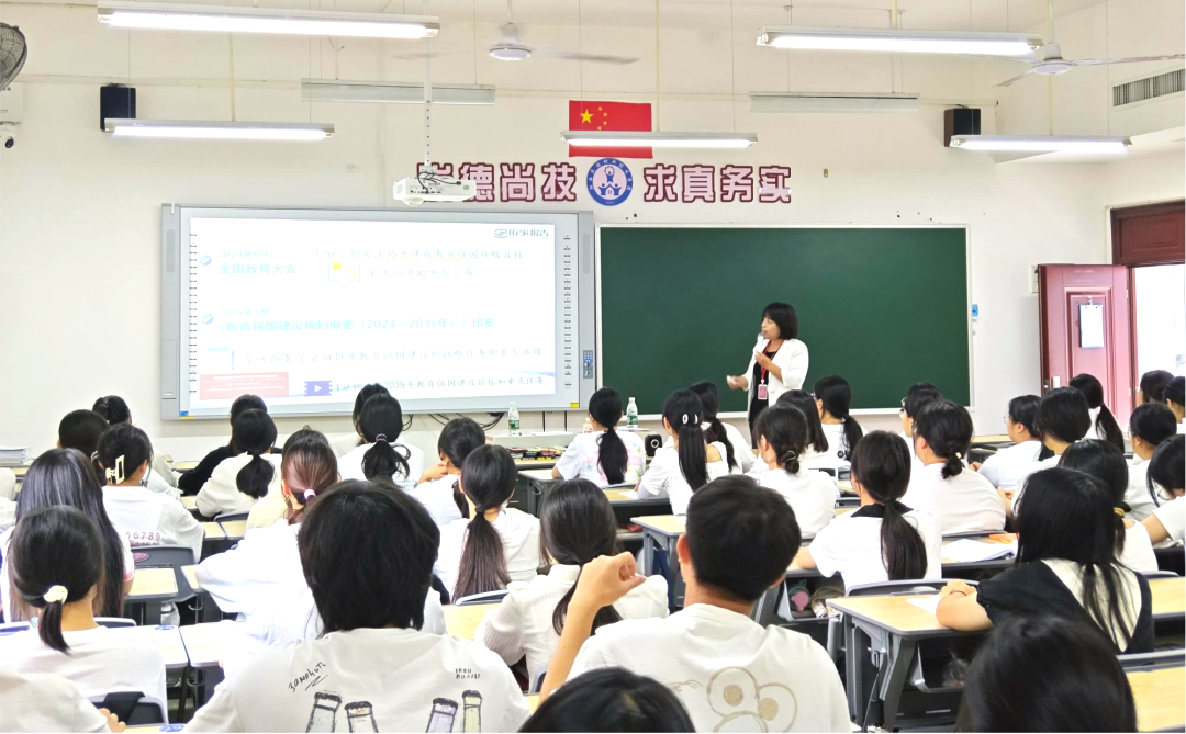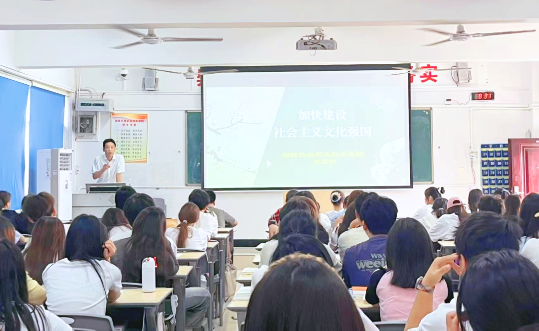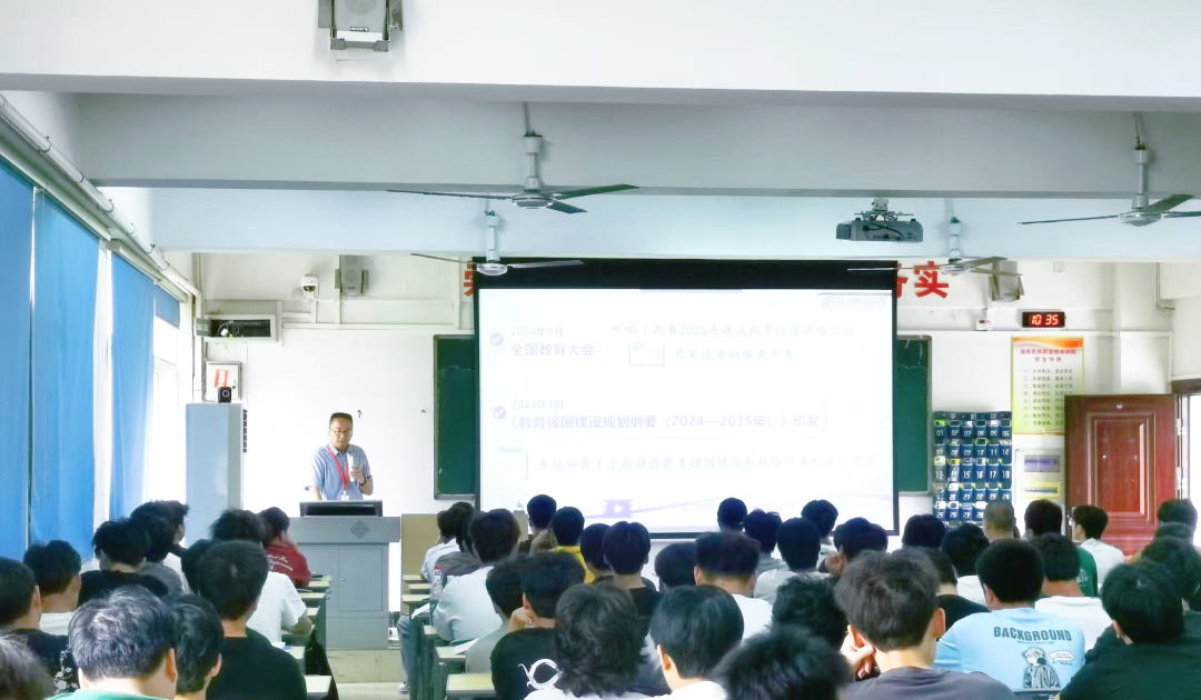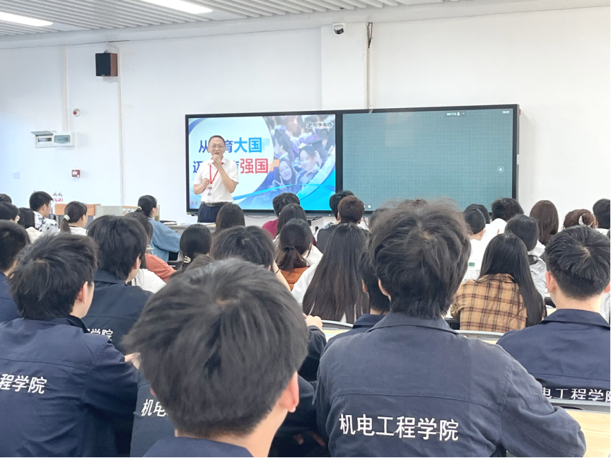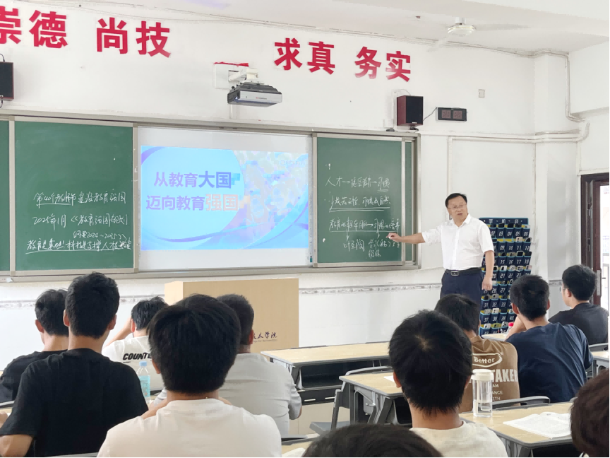 谢绍猛为2024级楚怡工匠班食品科学与工程专业学生讲授《从教育大国迈向教育强国》专题课程。课程围绕“楚怡精神”与新时代教育发展展开,强调立德树人的根本任务,并从教育基础战略支撑、优质均衡发展、深化改革推进等方面深入阐述我国教育事业的跨越式发展。此次授课进一步深化了学生对国家教育战略的理解,激励青年学子以“楚怡精神”为指引,勇担时代使命,为教育强国建设贡献青春力量。