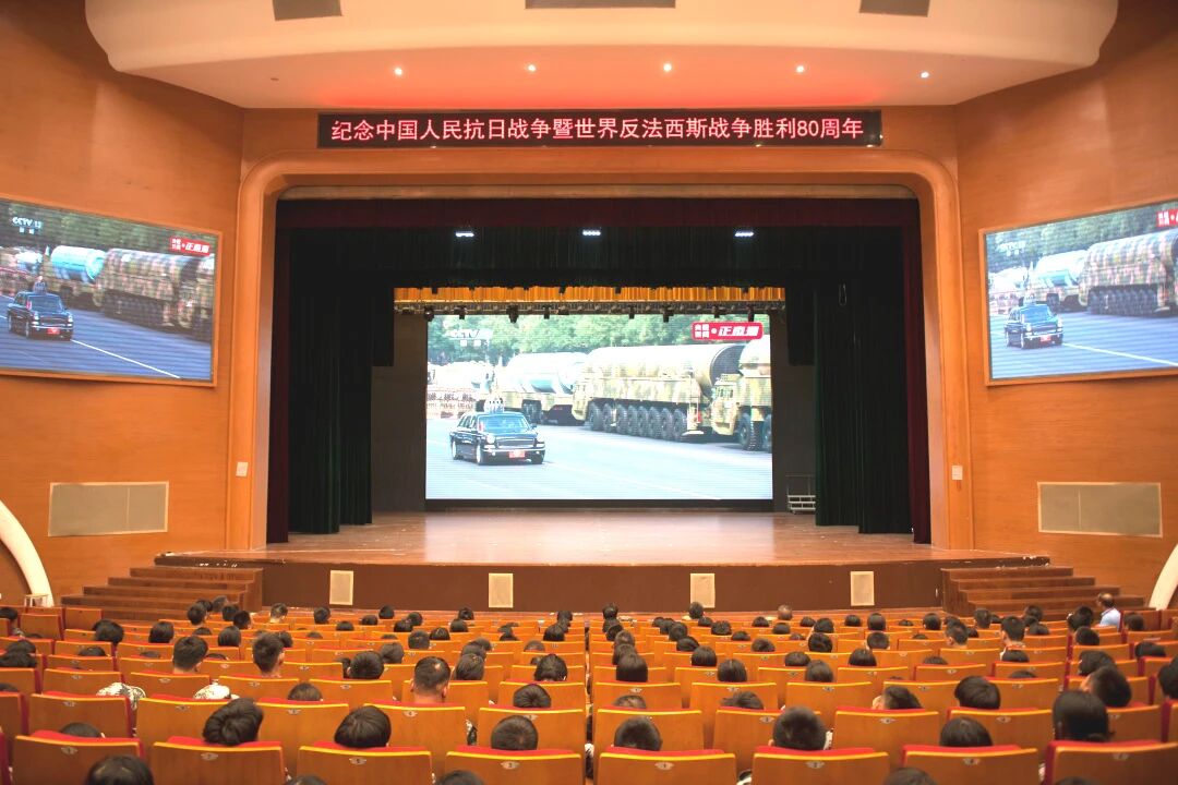 2025年9月3日是中国人民抗日战争暨世界反法西斯战争胜利80周年纪念日。为铭记历史、缅怀先烈、珍爱和平、开创未来,深刻感受国家富强、民族振兴的宏伟气象,激发全体师生的爱国热情和民族自豪感,我校于9月3日上午,组织全校师生集中收看“纪念中国人民抗日战争暨世界反法西斯战争胜利80周年大会”现场直播。