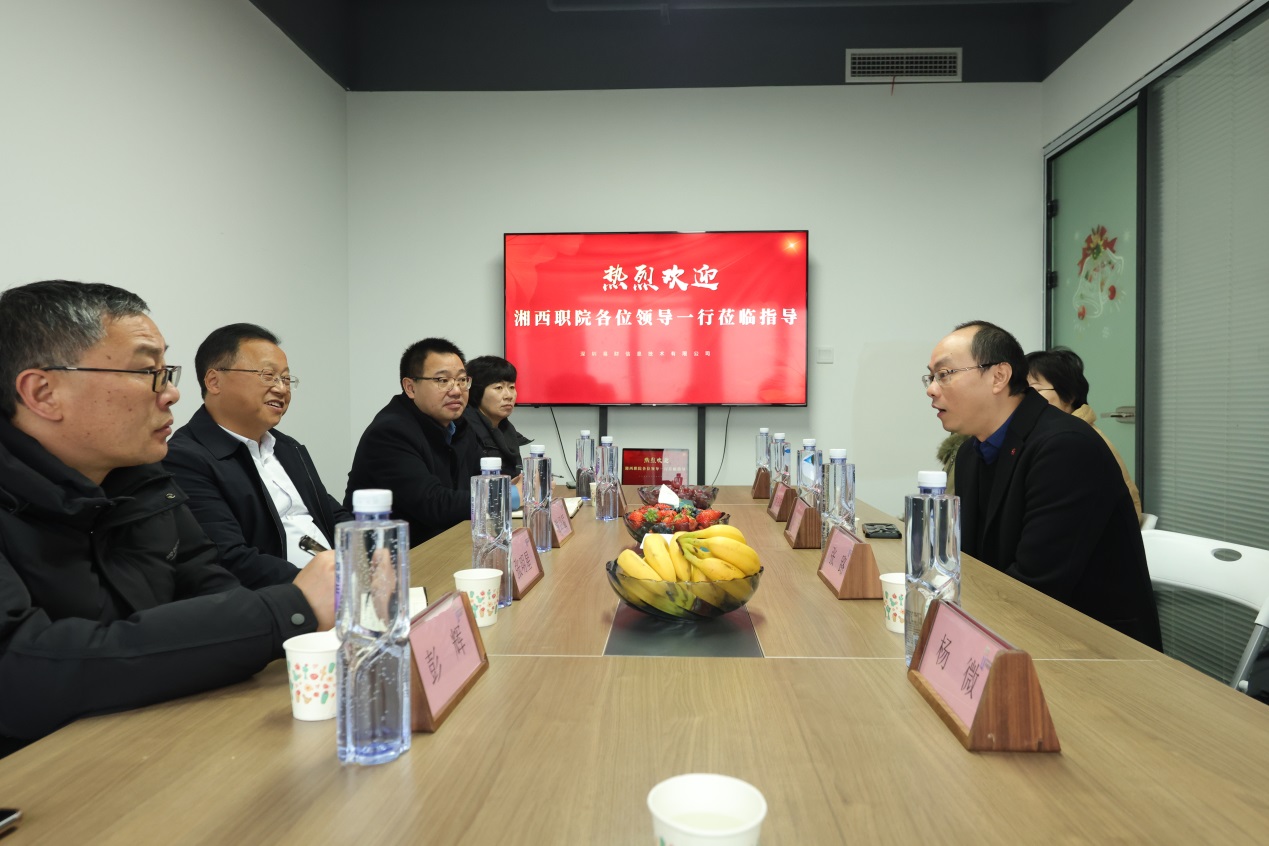 为积极响应、认真落实湖南省教育厅关于“校友回湘”行动的文件精神,搭建地方与学校互动协作、校友与湘商携手回归、人才资源与产业深度融合的双引擎驱动模式。1月31日,湘西民族职业技术学院党委书记谢绍猛率队前往深圳易财信息技术有限公司湖南分公司看望学校1998届校友刘刚,并参观校友企业。招生就业处处长黄毅、经济贸易学院院长张明星等参加走访。