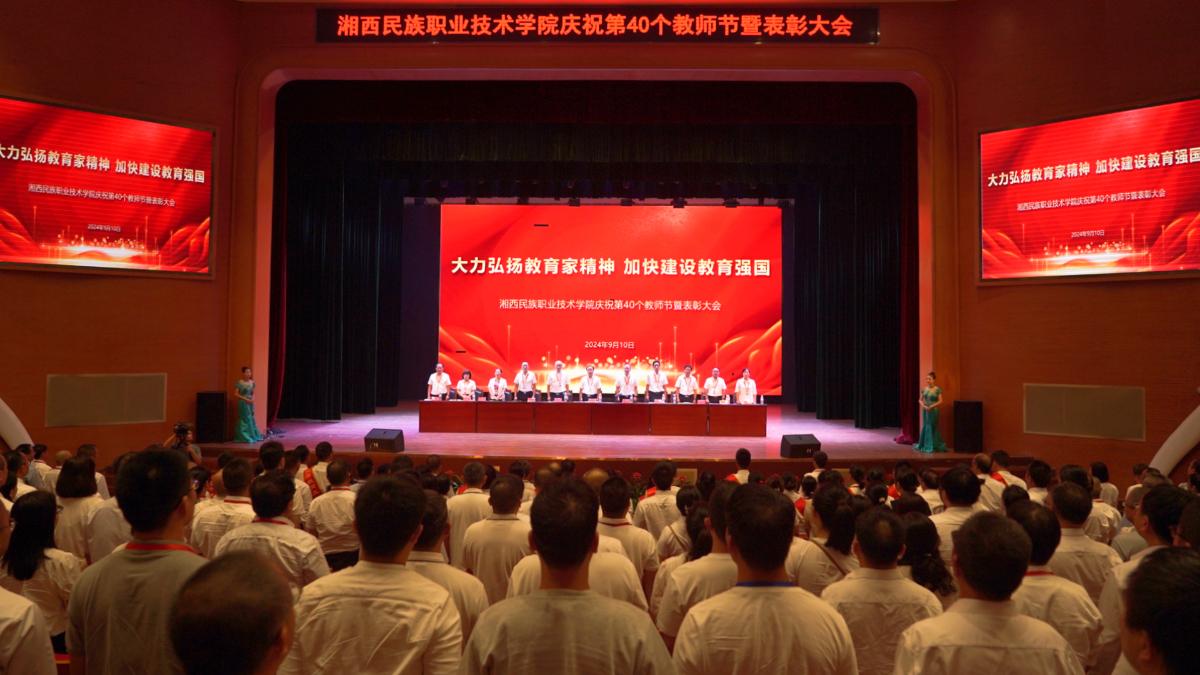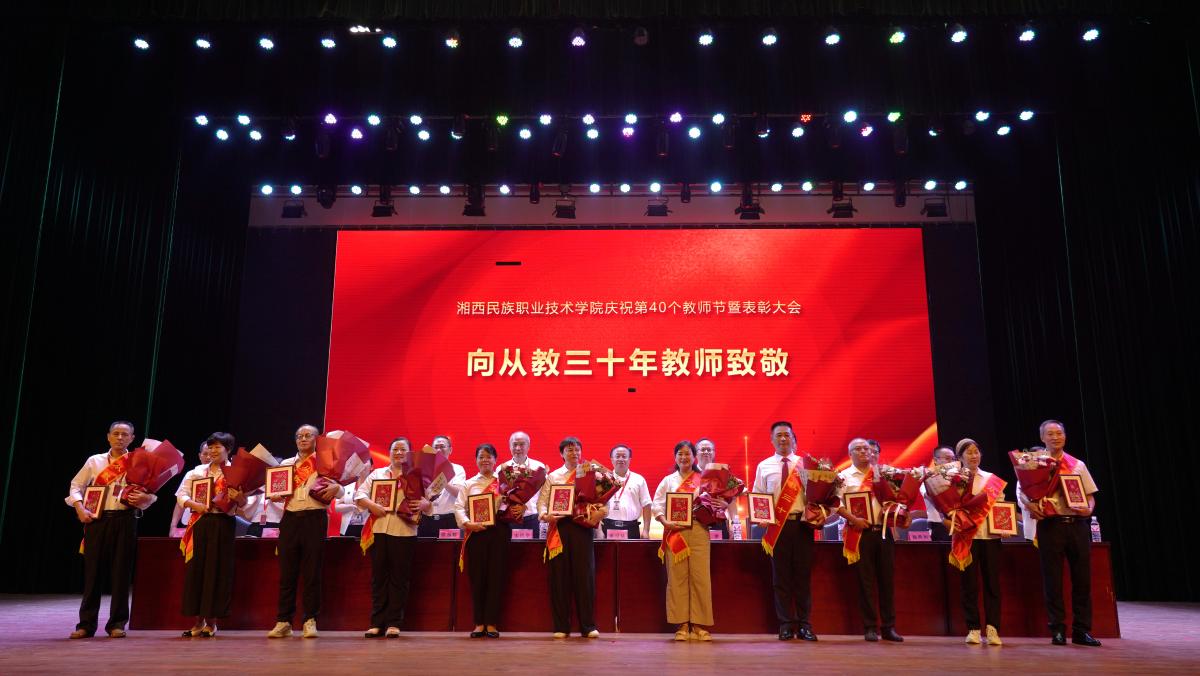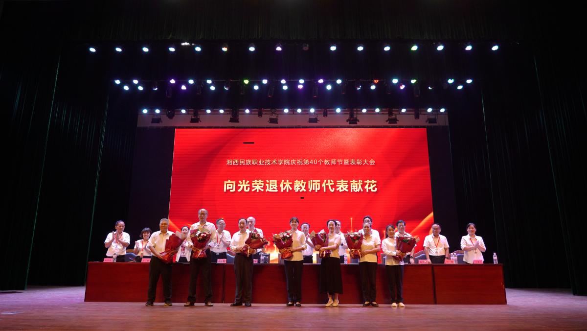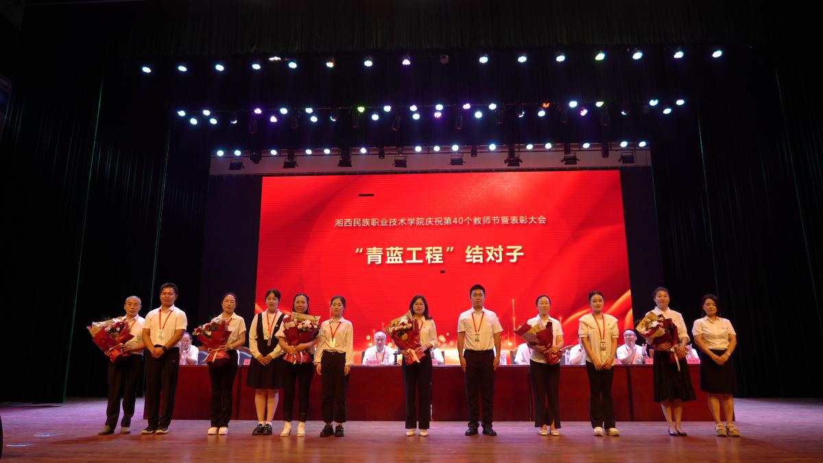 表彰大会中,校党委副书记、副校长宋清华宣读了《湘西民族职业技术学院关于表彰优秀教师和优秀教育工作者的决定》。学校党委班子成员现场对26名优秀教师、13名优秀教育工作者进行了表彰,为光荣退休教师代表献花,向从教三十周年教师颁发了纪念品。会上还进行了“青蓝工程”结对子,由新教师向老教师行拜师礼并献花,老教师将通过“传、帮、带”提高青年教师的业务能力和教学水平。
