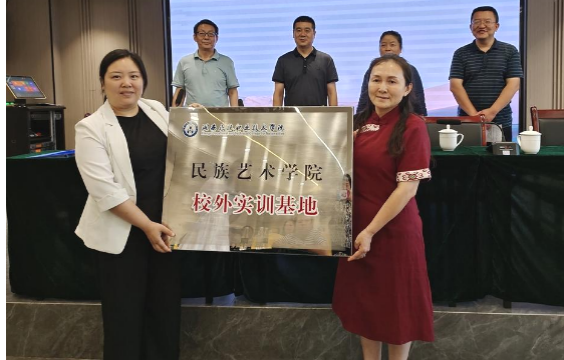 6月12日,民族艺术学院与龙山县叶氏民族工艺有限公司“校外实训基地”授牌仪式在龙山县西兰卡普大酒店举行。民族艺术学院院长熊智、正高级工艺美术师(土家织锦国家级传承人)叶水云以及部分工艺美术专业教师,龙山县文旅广电局局长曾凡勇、龙山县人社局相关领导、龙山县叶氏民族工艺有限公司负责人叶丽萍出席授牌仪式。
