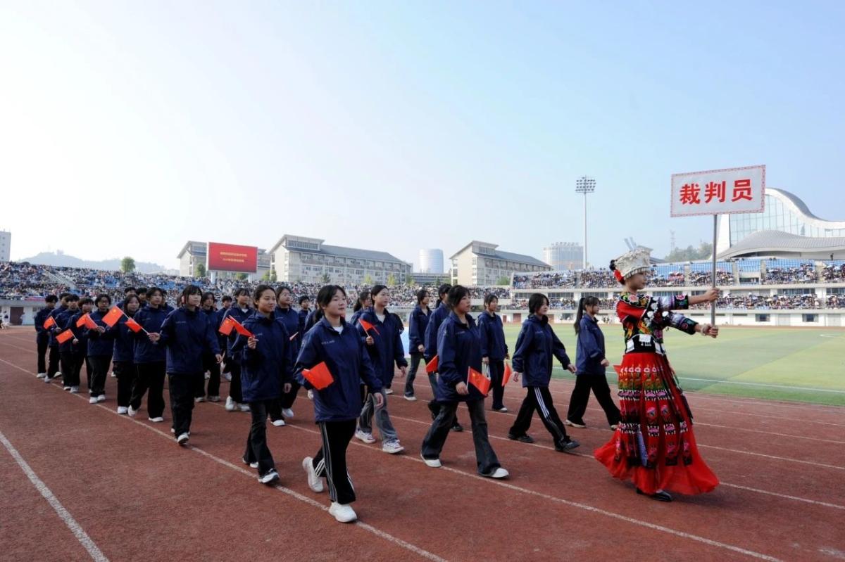 10月30日上午,秋高气爽,晴空万里,湘西民族职业技术学院2024年体育运动会开幕式在文体会展中心体育场开幕。我校党委书记谢绍猛出席开幕式并致辞,全体在家校领导班子成员及15000余名师生参加开幕式。校党委委员、副校长陈杨晖主持开幕式。