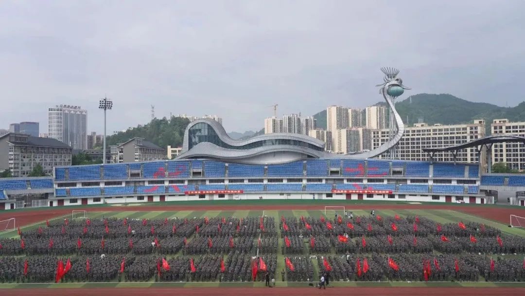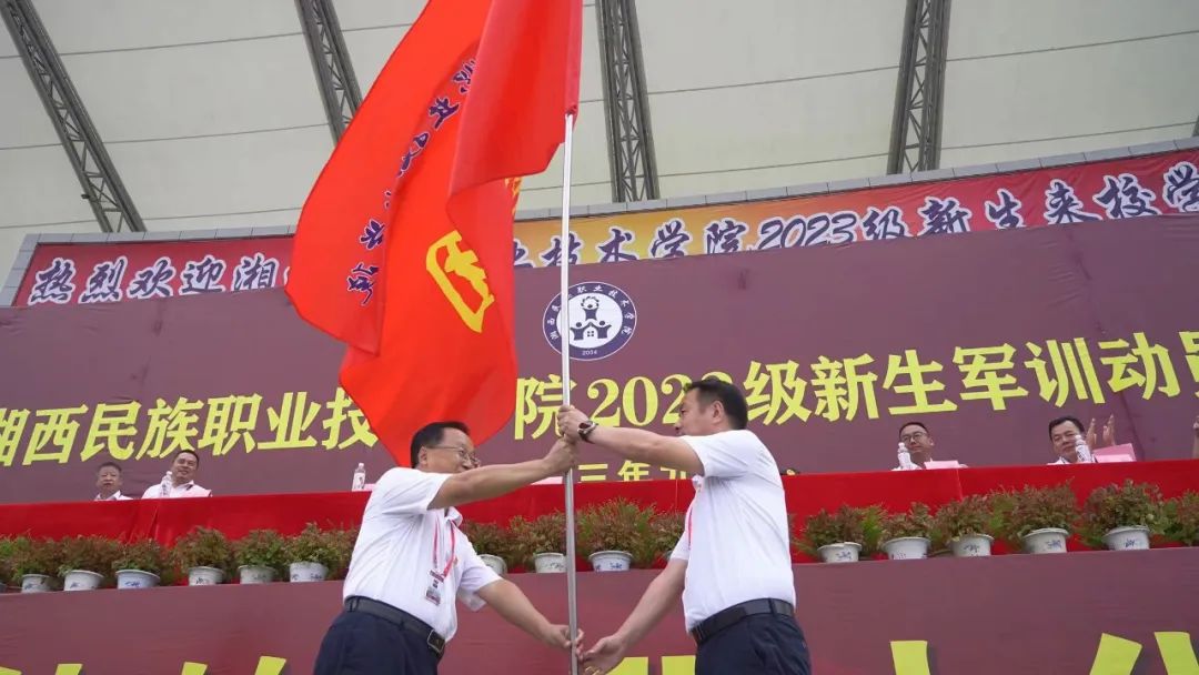 金秋九月,秋风送爽。4000余名朝气磅礴、风华正茂的2023级高职新生,步入了湘西民族职业技术学院的校门,新生军训也随之开启。9月6日上午,新生军训动员大会在文体中心体育场内召开。学院党委书记谢绍猛出席并为2023级学生军训团授旗,学院党委委员、副院长陈杨晖主持动员会,吉首市委常委、市人武部部长彭炎林,学院党委委员、副院长白刚出席并致辞。