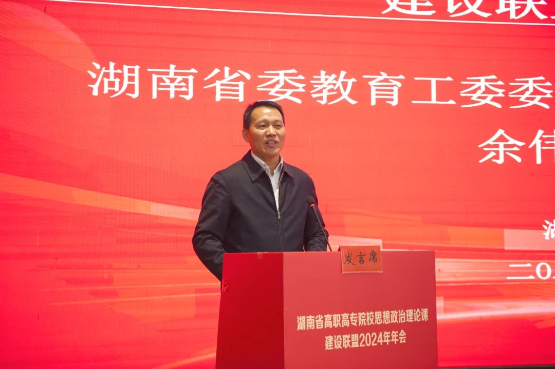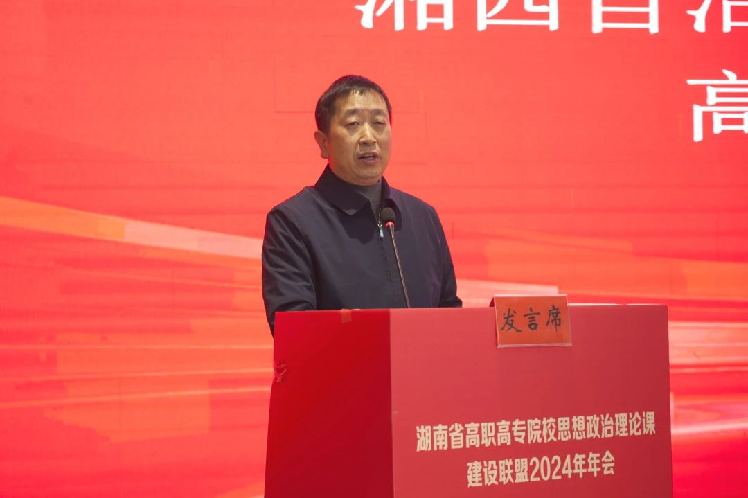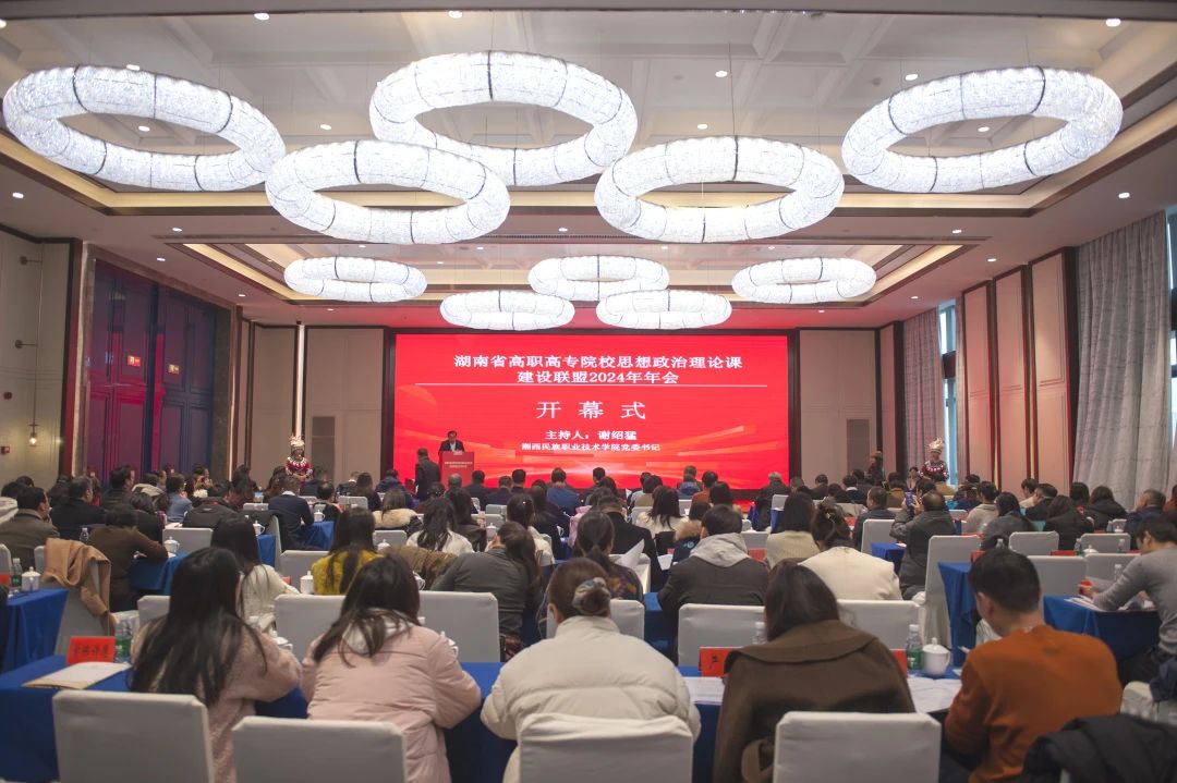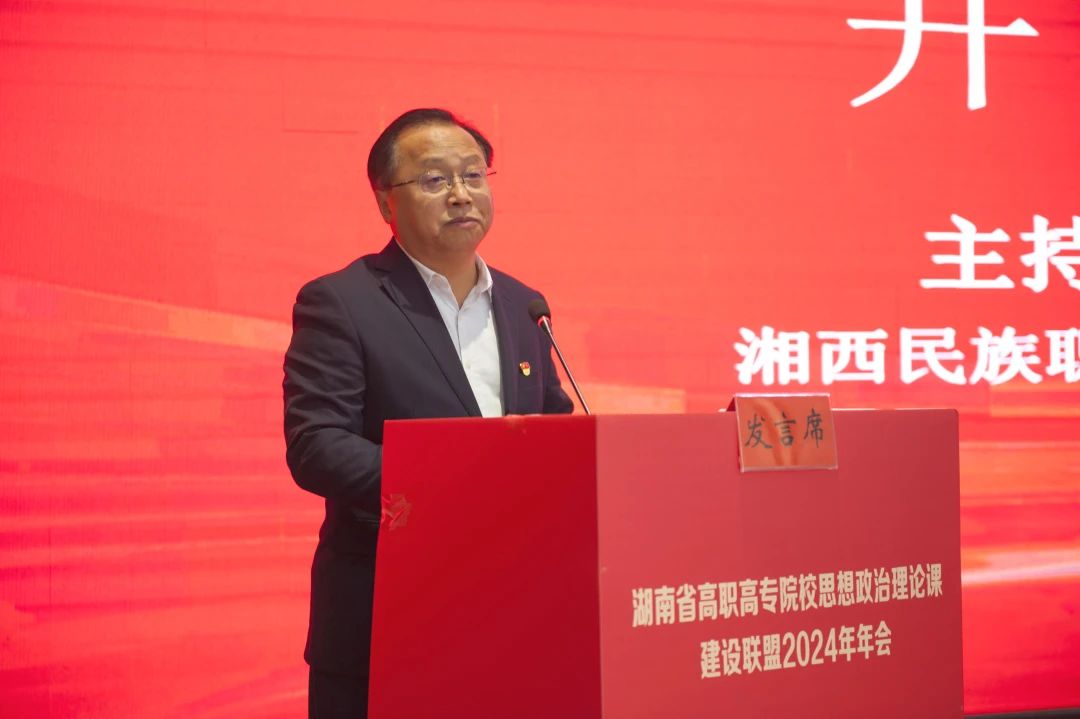 12月16日上午,由湘西民族职业技术学院承办的湖南省高职高专院校思想政治理论课建设联盟2024年年会在吉首举行。湖南省委教育工委委员、湖南省教育厅党组成员余伟良,湘西自治州人民政府副州长高湘文,全国高职高专院校思想政治理论课建设联盟会长、广东轻工职业技术大学党委书记杜安国,湖南省高职高专院校思想政治理论课建设联盟会长、长沙民政职业技术学院党委书记李斌,长沙航空职业技术学院党委书记朱国军出席开幕式,湘西职院党委书记谢绍猛主持开幕式,来自全省高职高专院校的一百六十余名思政课专家参加本次年会。