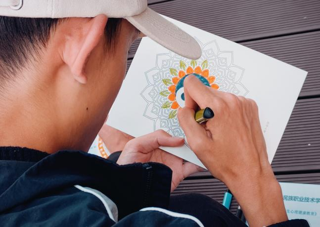 本次活动设置八大主题摊位,融合互动体验与心理科普。“偏见碎碎念”粉碎站引导学生写下“我不够好看”等消极认知,通过敲碎彩蛋完成“认知刷新”;“情绪调色盘”鼓励学生用色彩表达情绪,在志愿者的解读中学会接纳情绪多样性;“健康伙伴”协作拼图、团队“风火轮”等项目则让学生在合作中传递“接纳自我、无偏见同行”的积极理念。现场还设有心理咨询预约区和认知宣言书写区,心理教师现场提供专业辅导,并发放心理健康科普手册4000册。