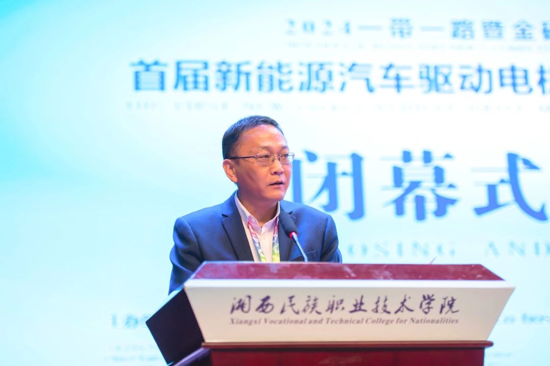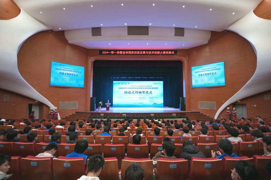 12月1日上午,在湘西民族职业技术学院举办的一带一路暨金砖国家技能发展与技术创新大赛首届新能源汽车驱动电机及控制技术(虚拟仿真)赛项决赛,经过一天的激烈比拼,各项赛程圆满完成后胜利闭幕。闭幕式暨颁奖仪式在湘西职院展示厅举行,湘西职院党委书记谢绍猛、湘西职院校长翁波、北京智学客教育科技有限公司市场总监赵树森、北京企学研教育科技研究院竞赛合作处副主任张俊猛、赛项专家组长张立荣、赛项仲裁长何锡武、赛项裁判长林崟、湘西职院副校长白刚、吴娟等出席闭幕式,本次赛项参赛选手及指导老师、湘西职院交通工程学院师生代表近千人参加了闭幕式。闭幕式由湘西职院副校长陈杨晖主持。
