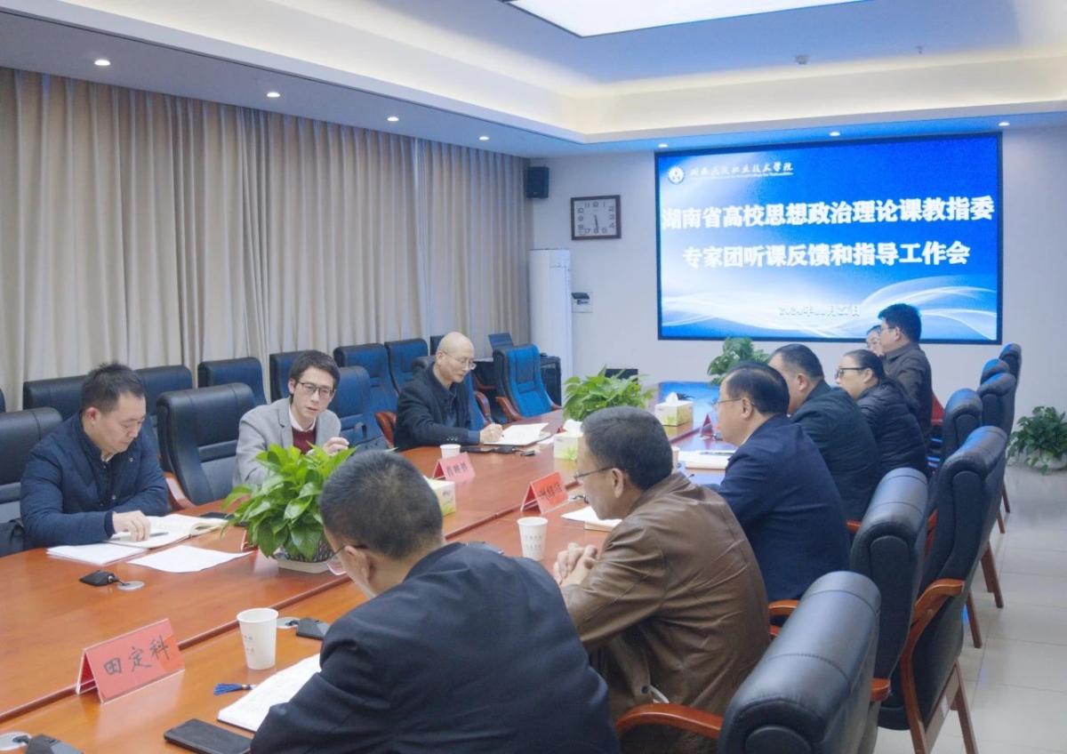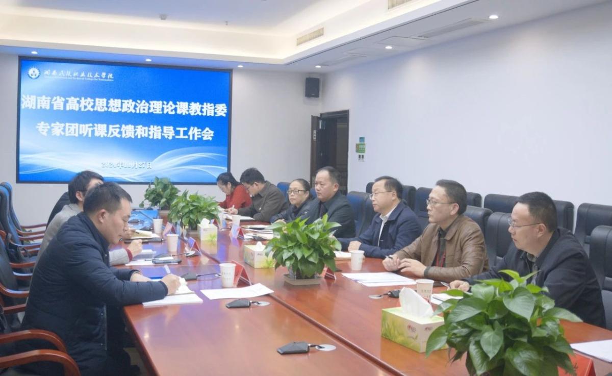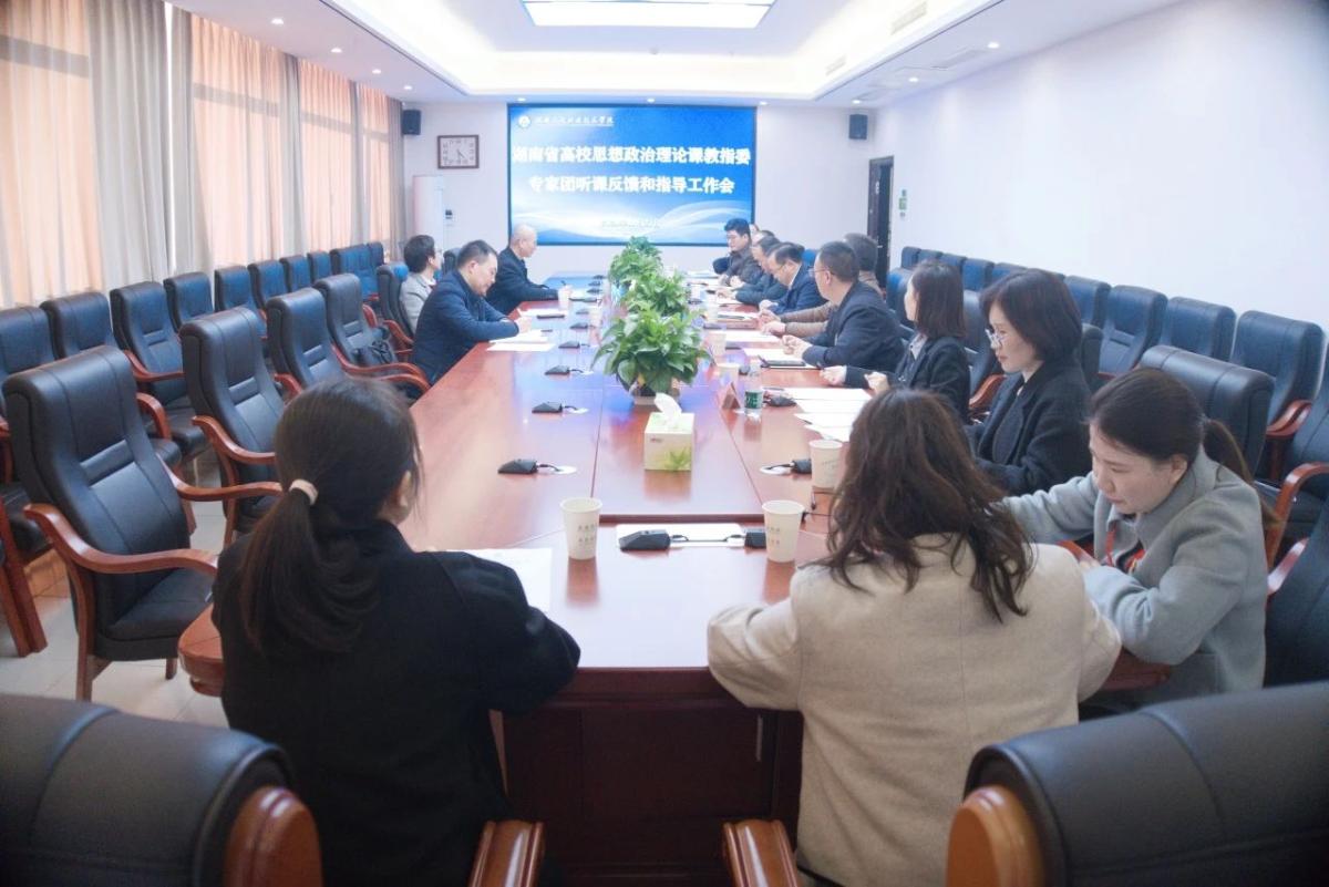 11月27日下午,湖南省高校思想政治理论课教学指导委员会专家湖南文理学院马克思主义学院院长周忠华教授、吉首大学马克思主义学院副院长曾文教授来我校调研指导思政课教育教学工作,深入思政课堂听课评课。学校党委书记谢绍猛,党委委员、副校长陈杨晖,党委委员、宣传统战部部长向昌斌等参与听课和反馈会。