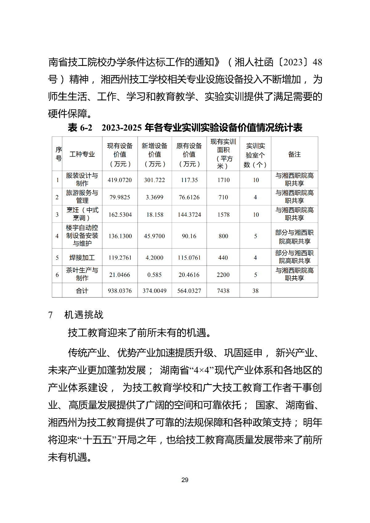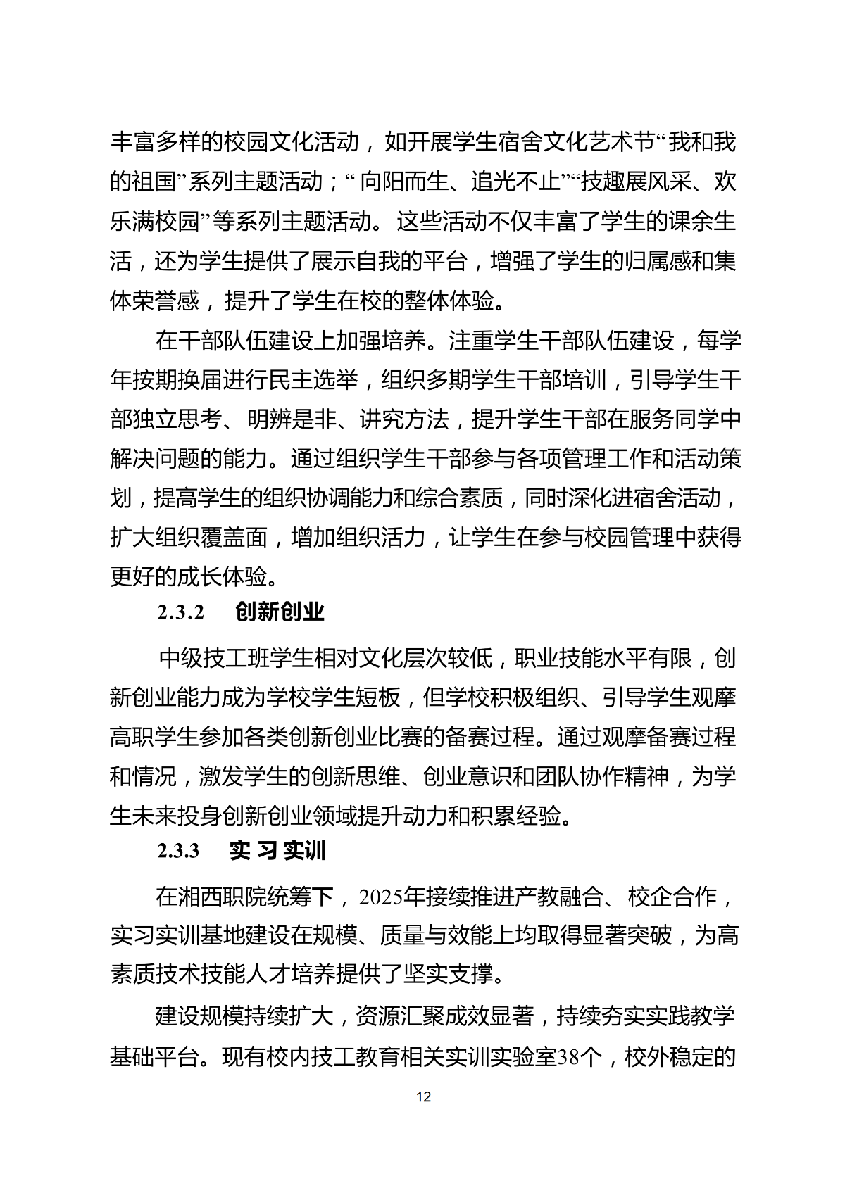 湘西土家族苗族自治州技工学校技工教育2025年度质量报告