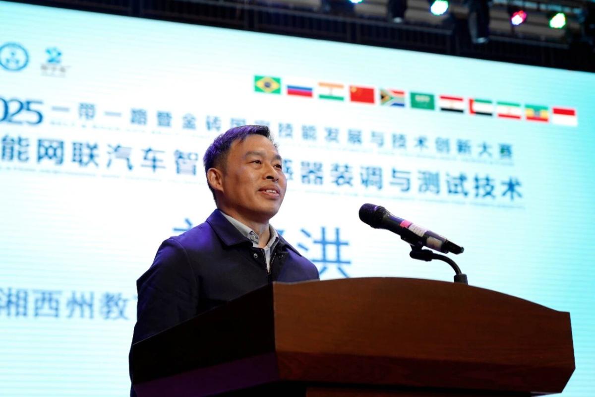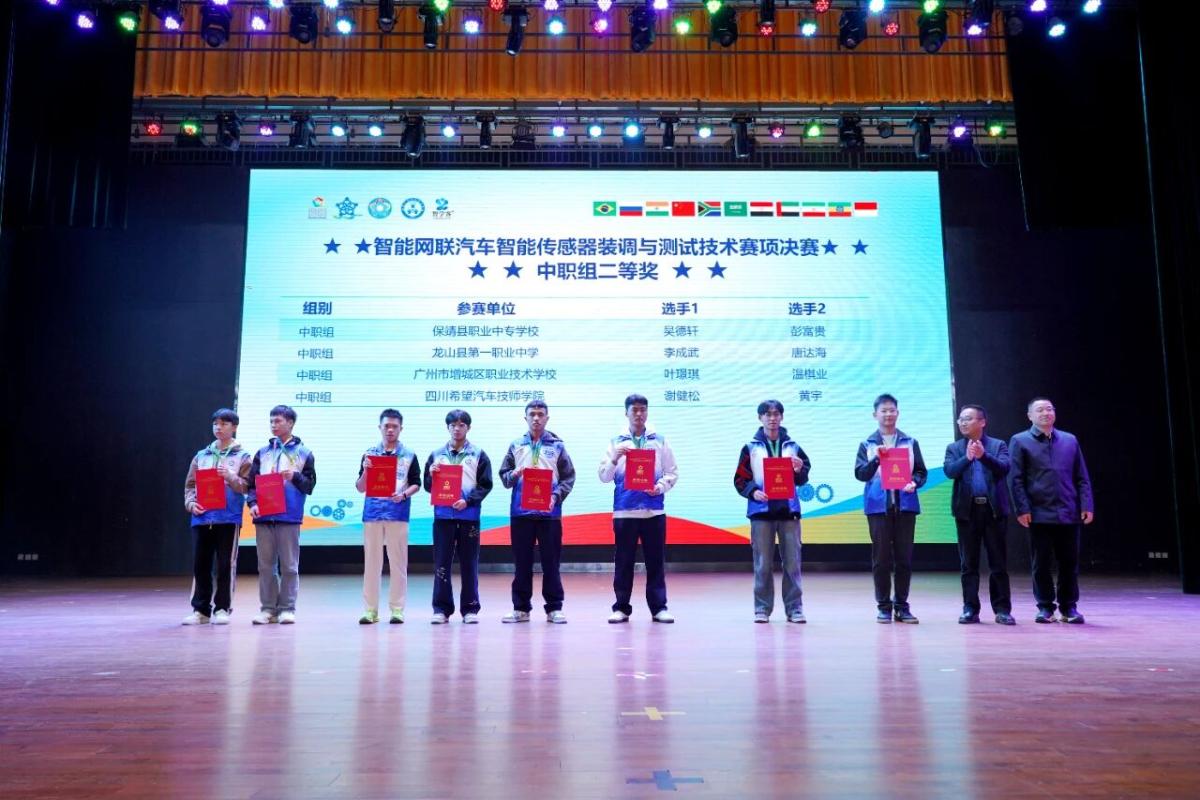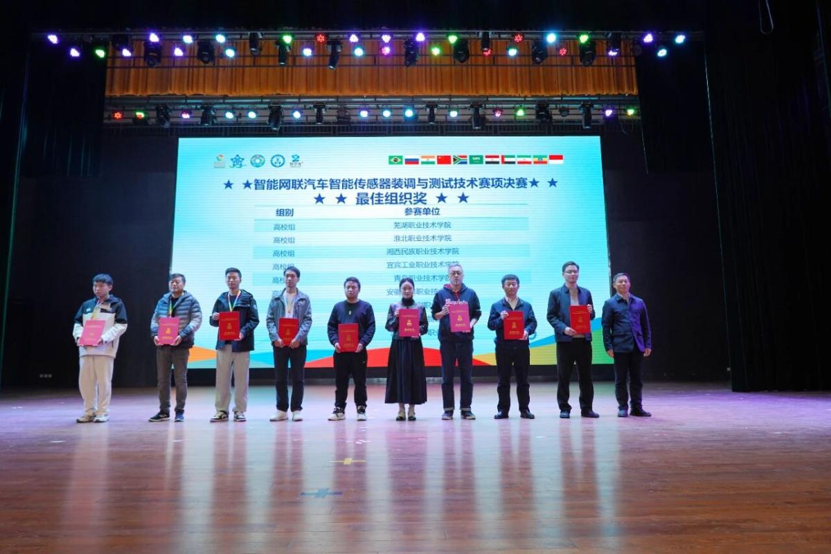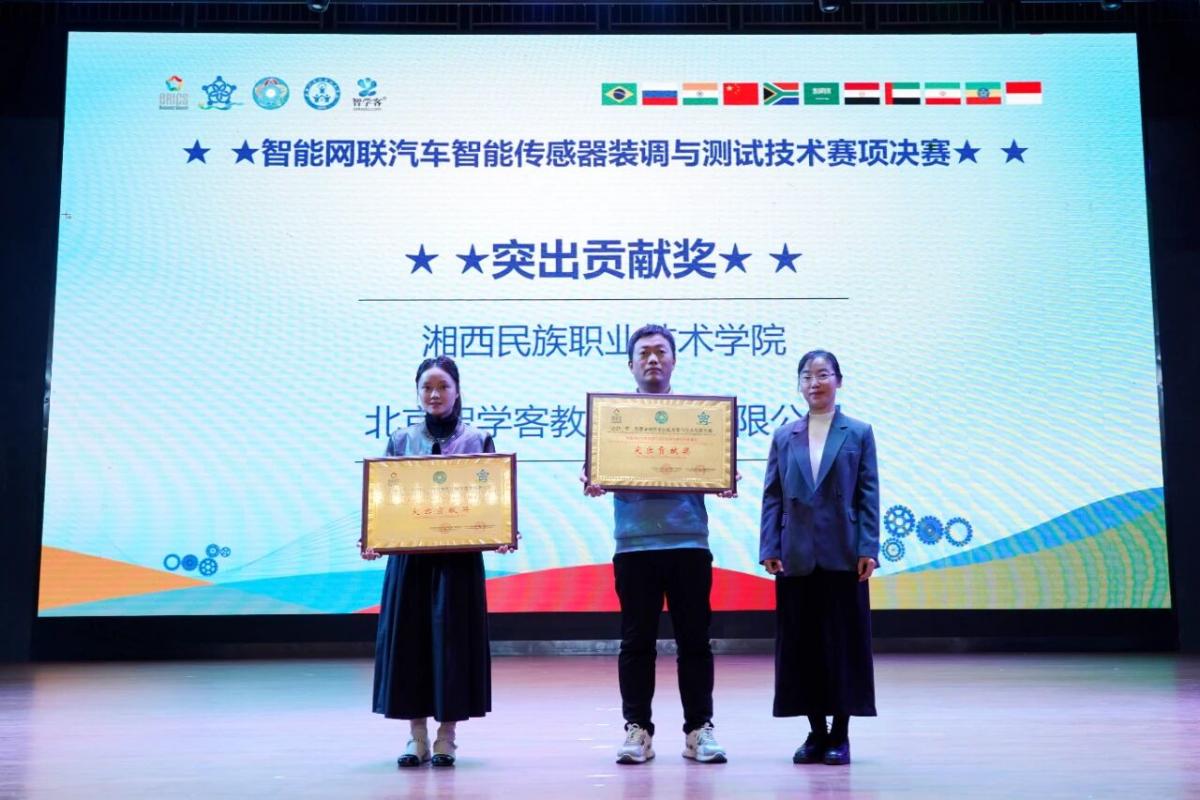 11月29日下午,为期三天的2025一带一路暨金砖国家技能发展与技术创新大赛——智能网联汽车智能传感器装调与测试技术赛项决赛,在湘西民族职业技术学院文体会展中心展示馆圆满落下帷幕。湘西州教育和体育局党组成员、副局长刘修洪,金砖国家技能发展与技术创新大赛组委会执委会国内竞赛办公室副处长王丹丹,北京智学客教育科技有限公司营销总监孙岩,湘西职院党委副书记、副校长陈杨晖,湘西职院党委委员、副校长白刚、吴娟、黄毅等领导出席闭幕式。